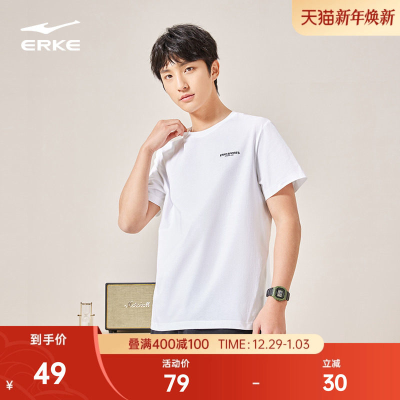 鸿星尔克短袖男夏季新款男士上衣半袖运动男装男生棉感白色t恤男