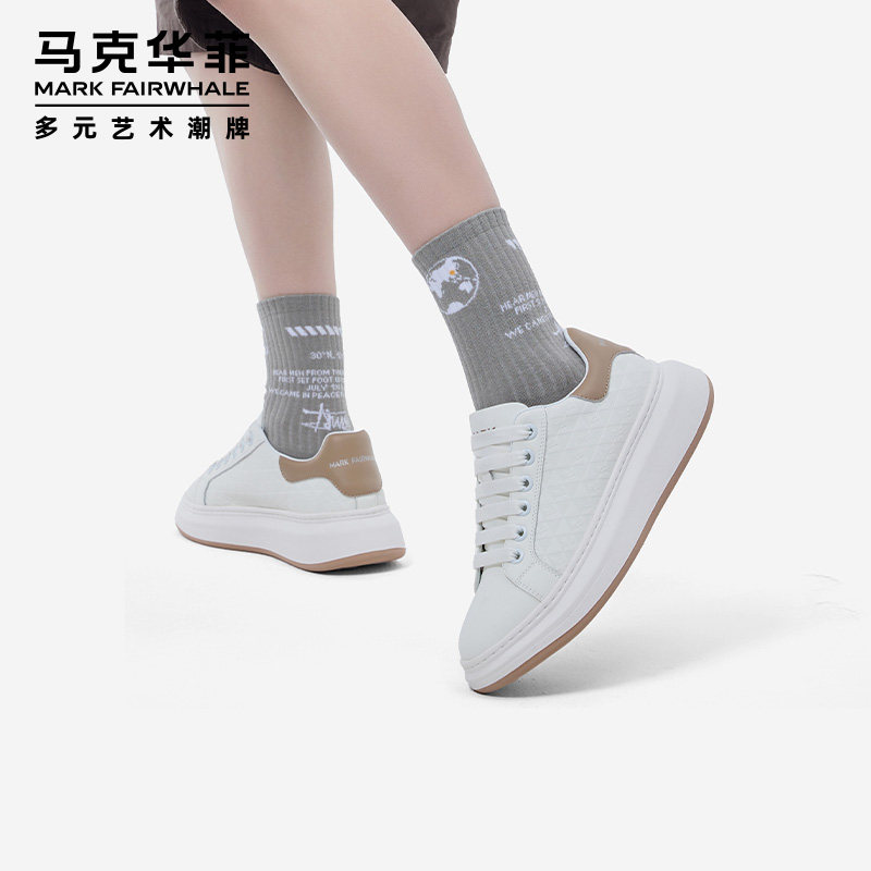 马克华菲夏季透气小白鞋男潮流百搭运动麦昆板鞋厚底增高休闲白鞋