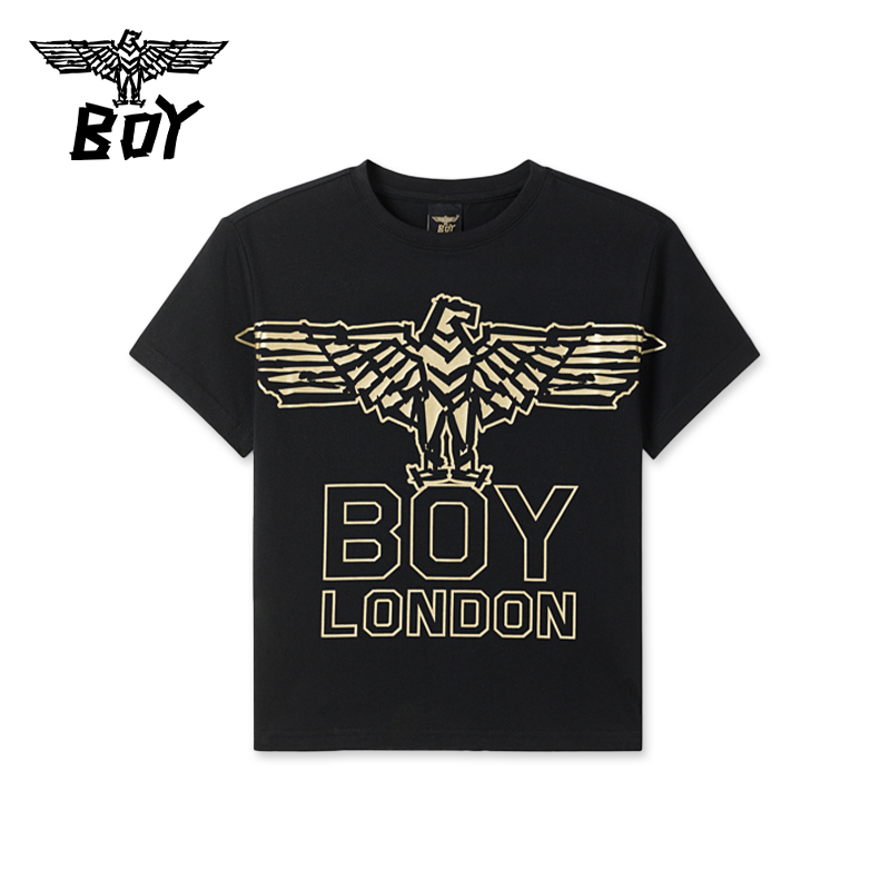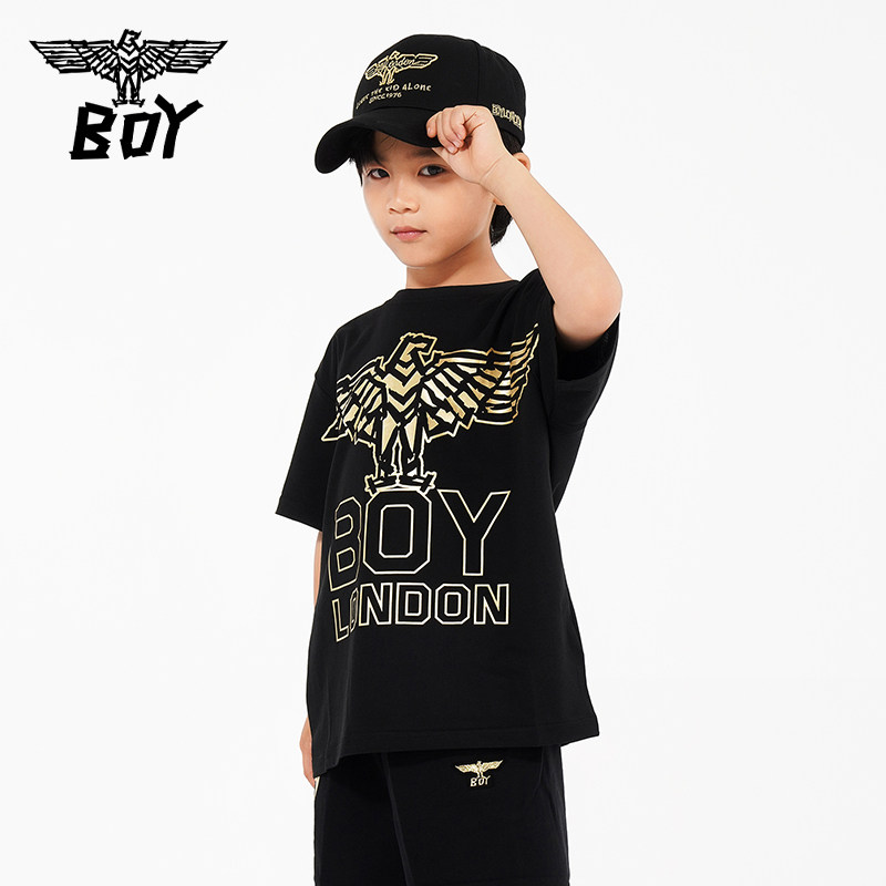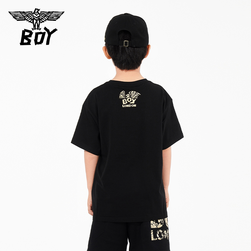 【胜利之鹰】BOY童装儿童潮流短袖男女童春季黑色圆领朋克印花T恤
