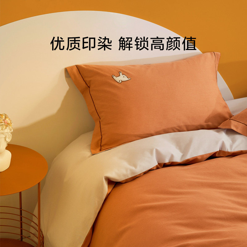 A类水洗棉双层纱四件套被罩非全棉纯棉床单人学生宿舍被套三件套