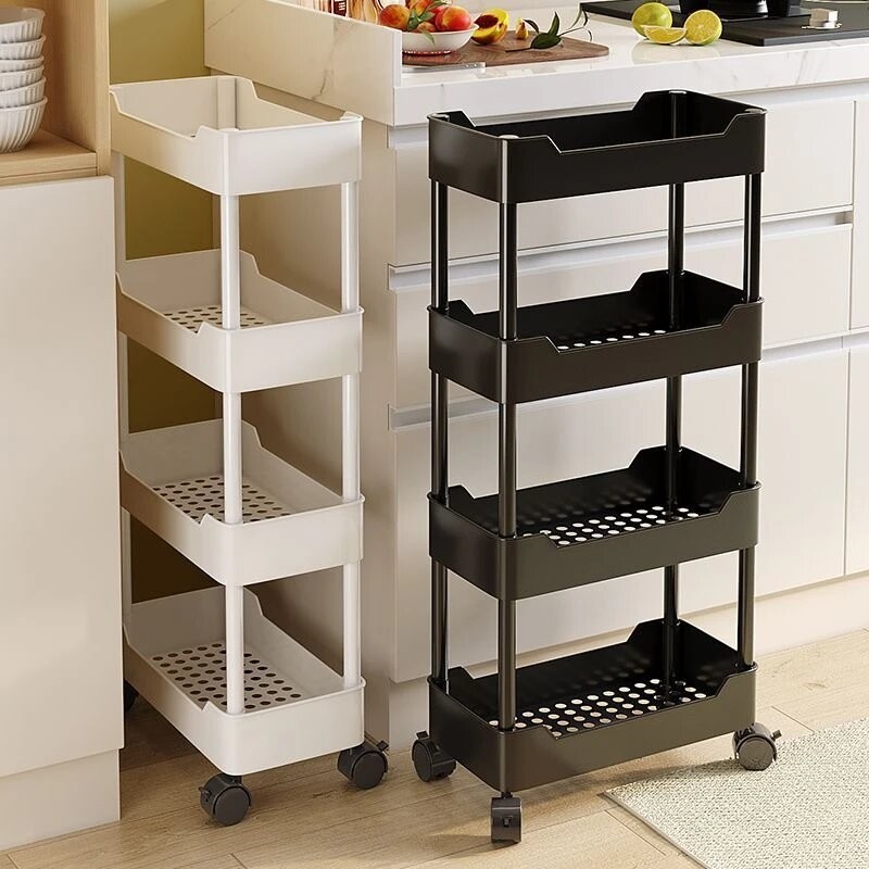 厨房夹缝小推车置物架落地多层窄缝收纳架多功能可移动果蔬菜篮子