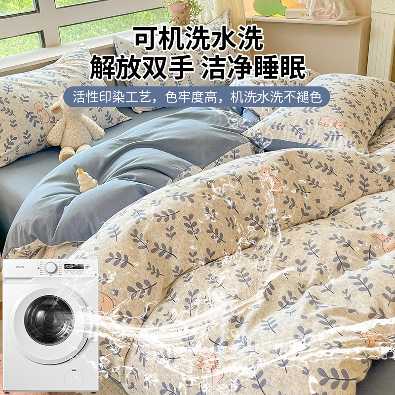 A类水洗棉双层纱四件套被罩非全棉纯棉床单人学生宿舍被套三件套