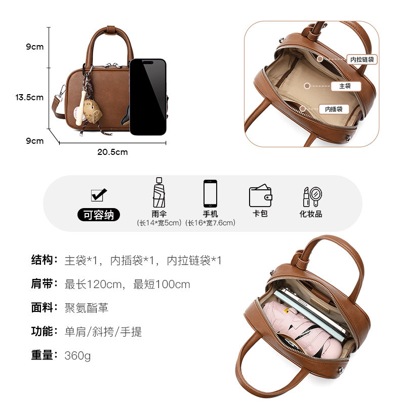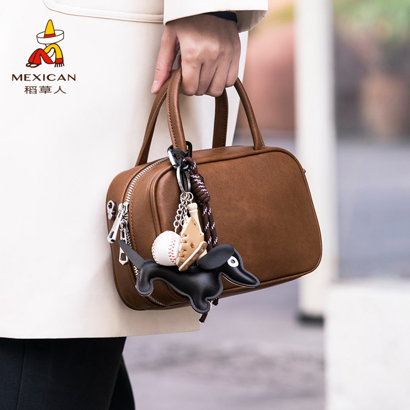 稻草人包包女新款秋冬斜挎包美拉德波士顿包百搭通勤手提包女包