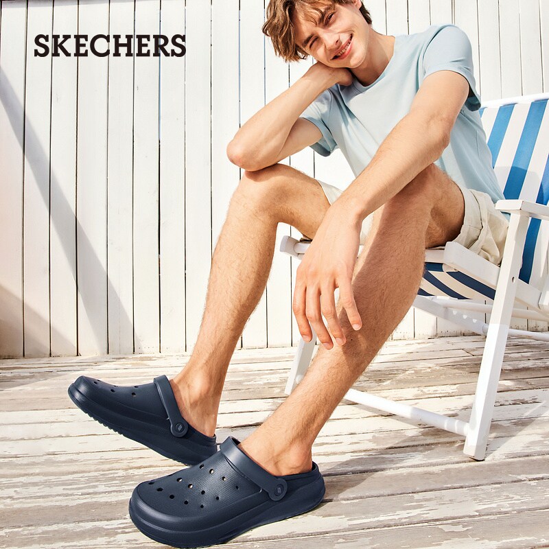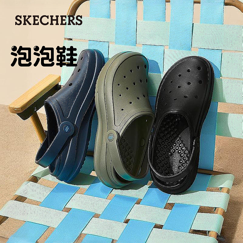 Skechers斯凯奇泡泡鞋夏季款男鞋外穿拖鞋洞洞鞋厚底防滑户外凉鞋