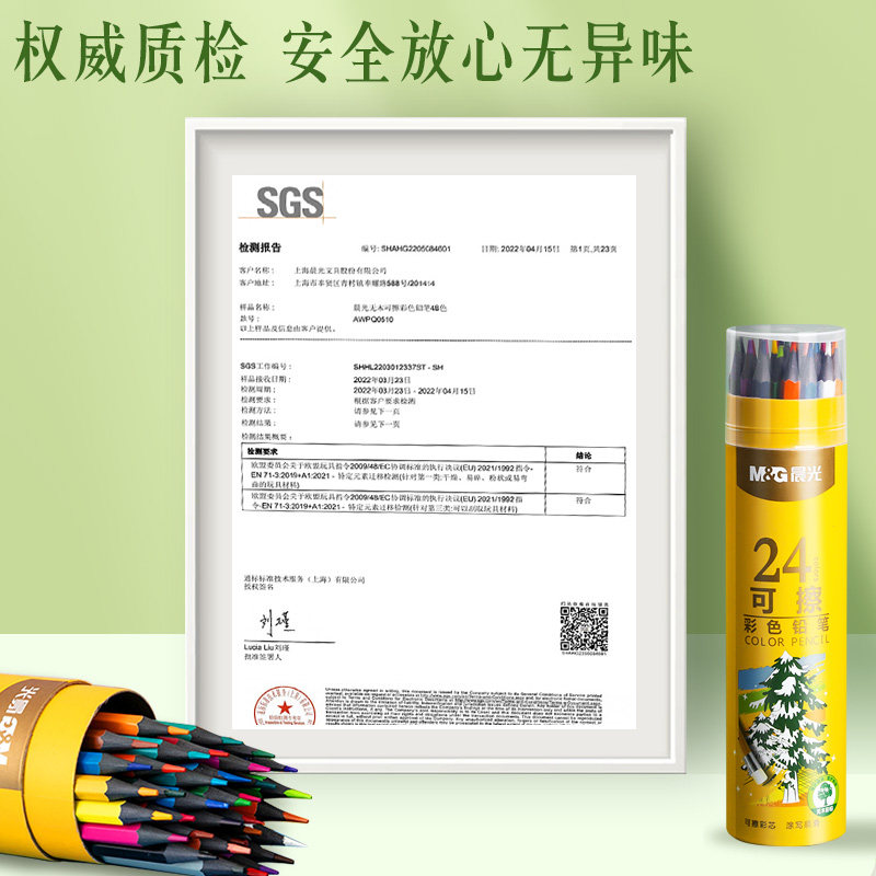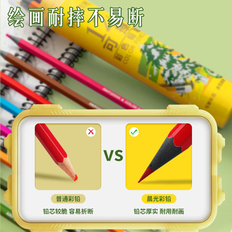 晨光可擦彩铅笔美术生学生用无木可擦绘画素描笔36色彩色铅笔幼儿园儿童美术素描24色画画笔初学者涂色彩笔