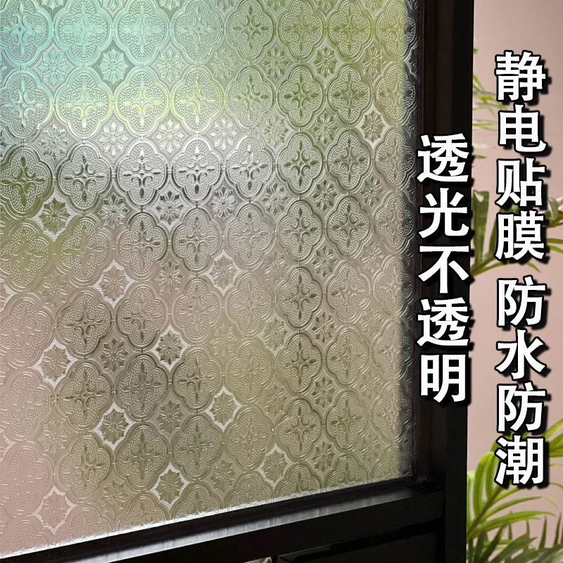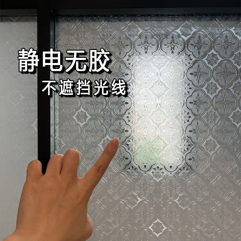 复古玻璃窗贴纸透光不透明卫生间防窥炫彩浮雕窗花磨砂贴膜防走光