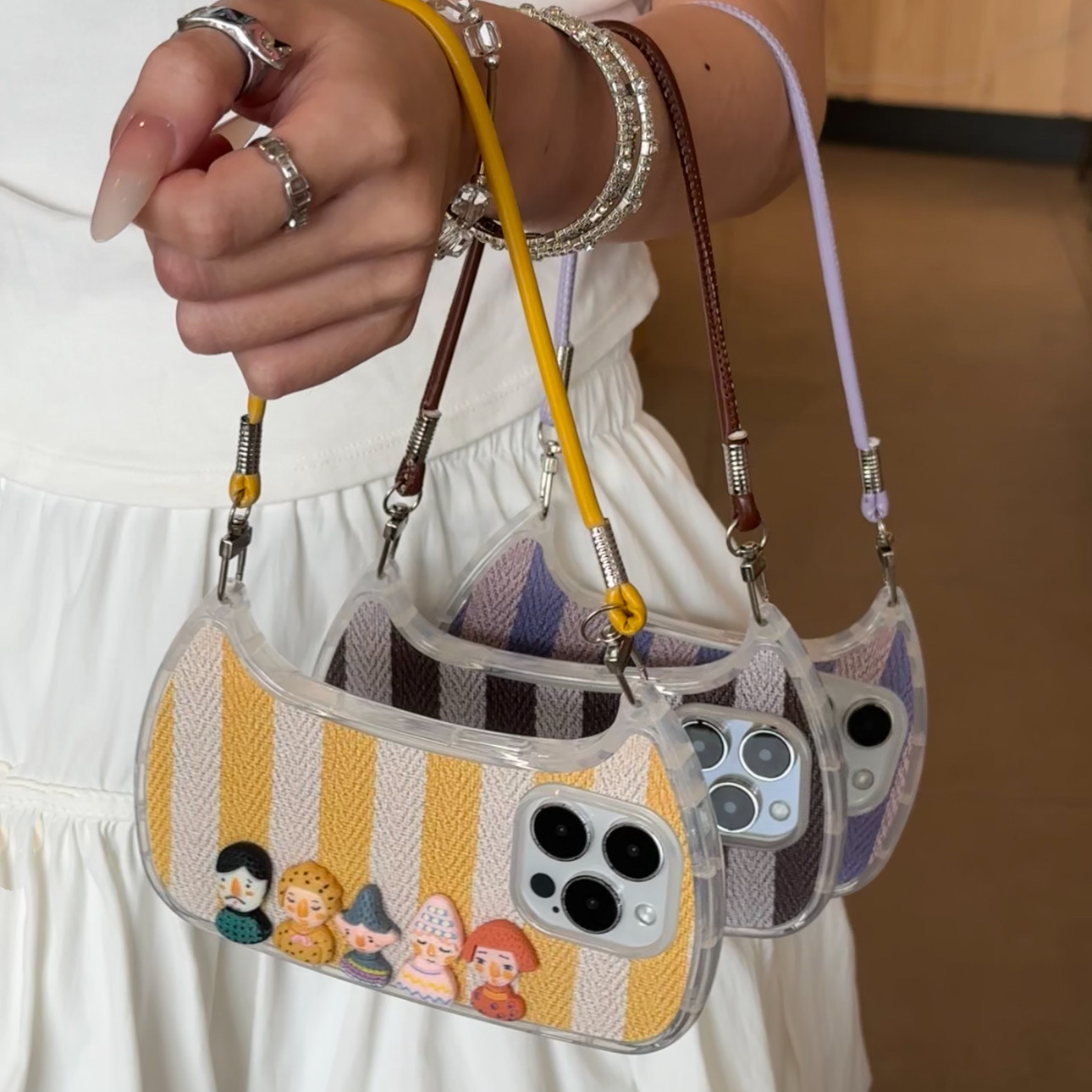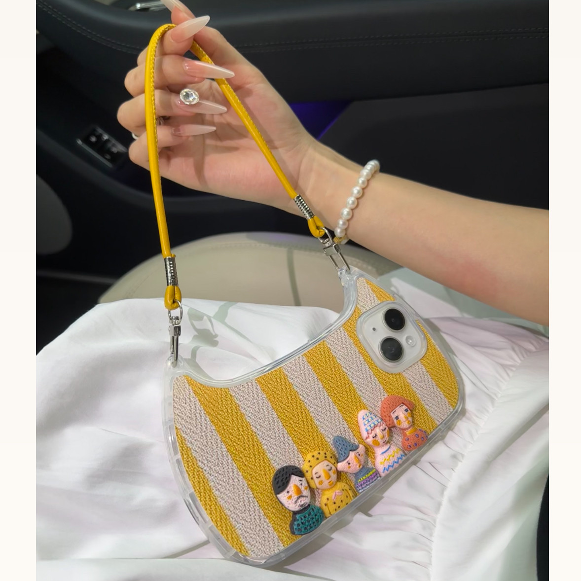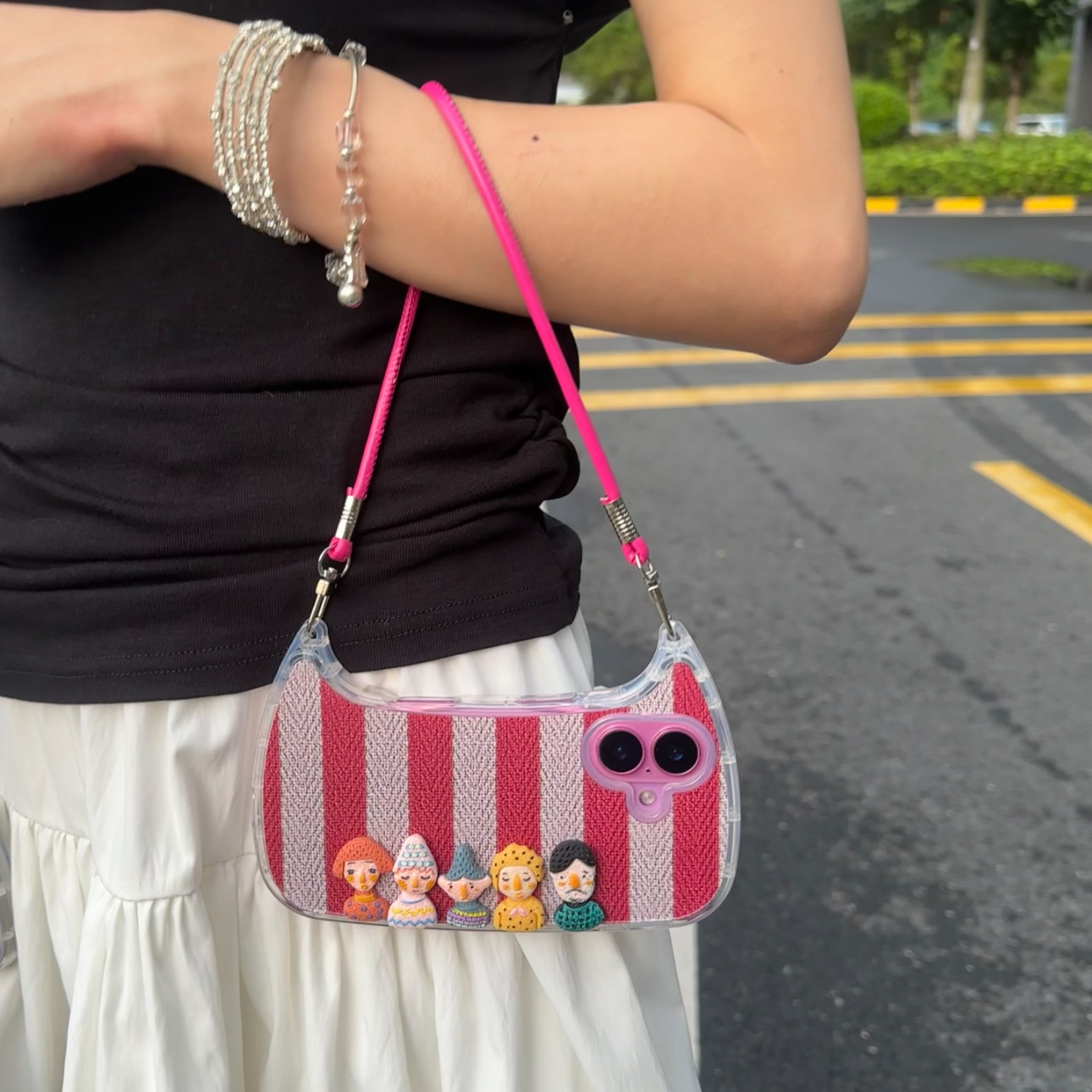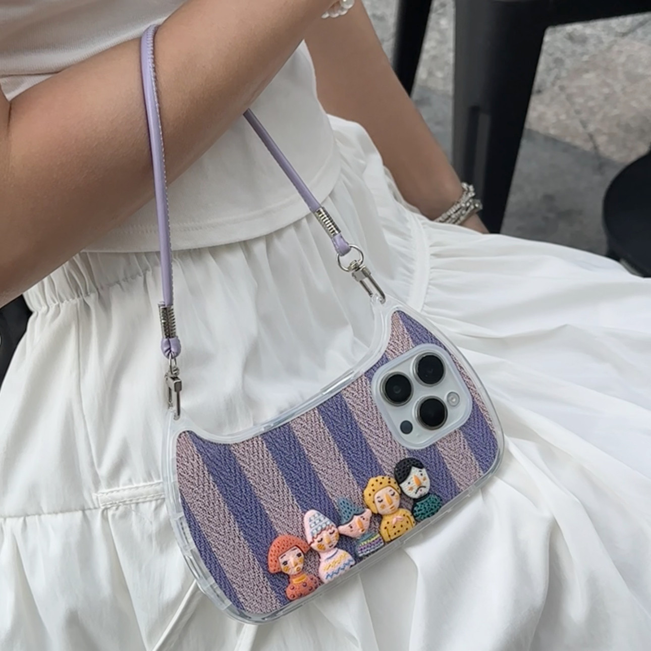 条纹人偶手提包适用iPhone15promax手机壳苹果17pro新款16promax小众13潮流12保护套11硅胶防摔15plus软壳女