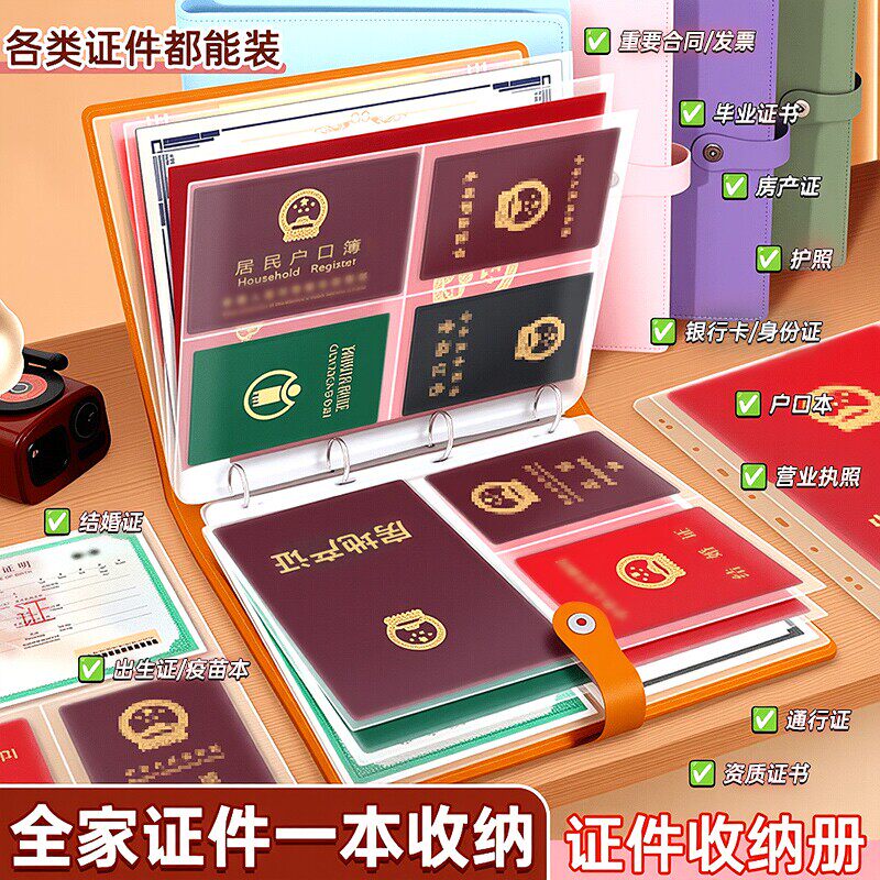 家庭证件收纳包文件袋家用a4收纳册证书卡包夹护照身份证房本资料