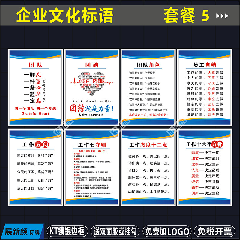 企业文化标语 车间办公室展板挂图会议室宣传海报 员工励志标识牌