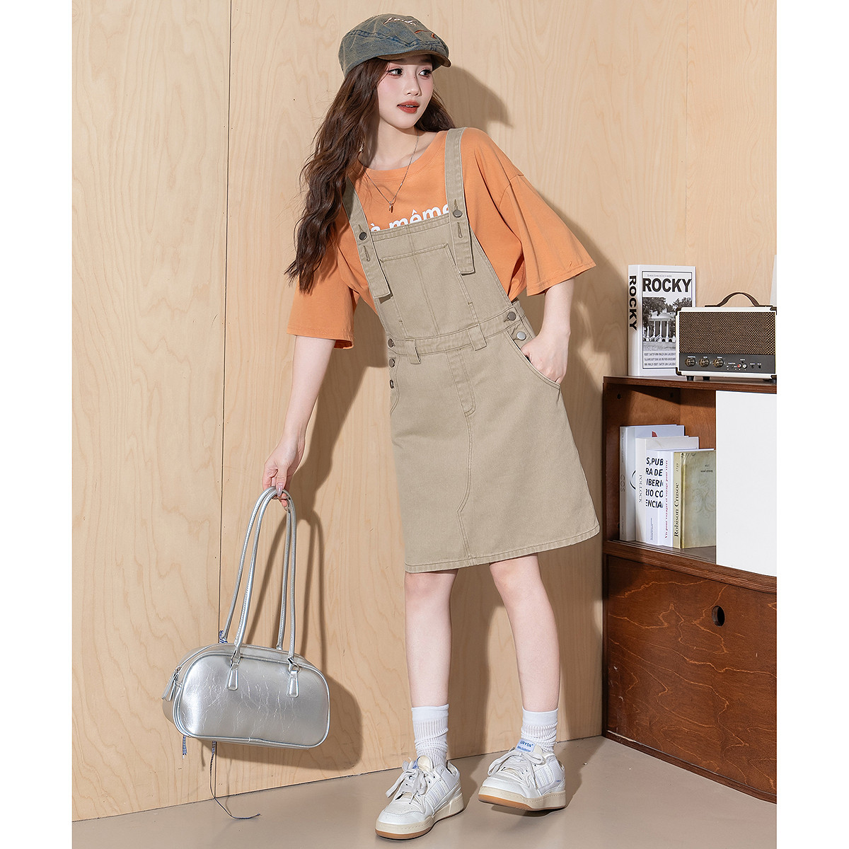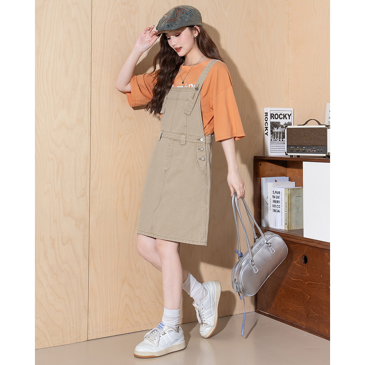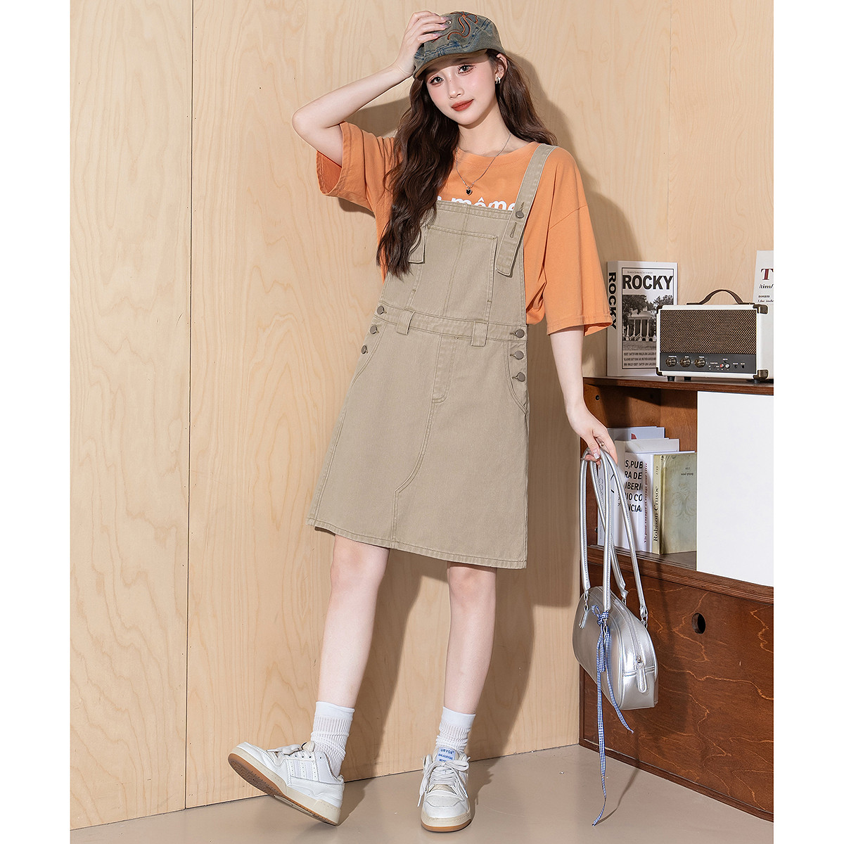 唐狮春夏季新款连衣裙女工装风背带小个子设计感显瘦休闲中长裙
