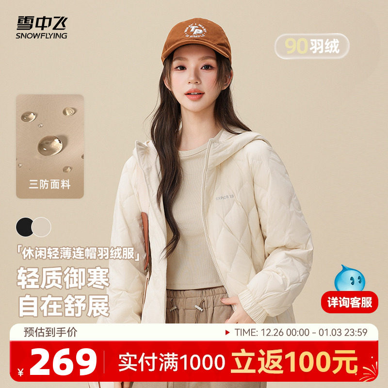 雪中飞2025冬新款轻薄羽绒服女冬小个子韩系简约插肩宽松连帽保暖