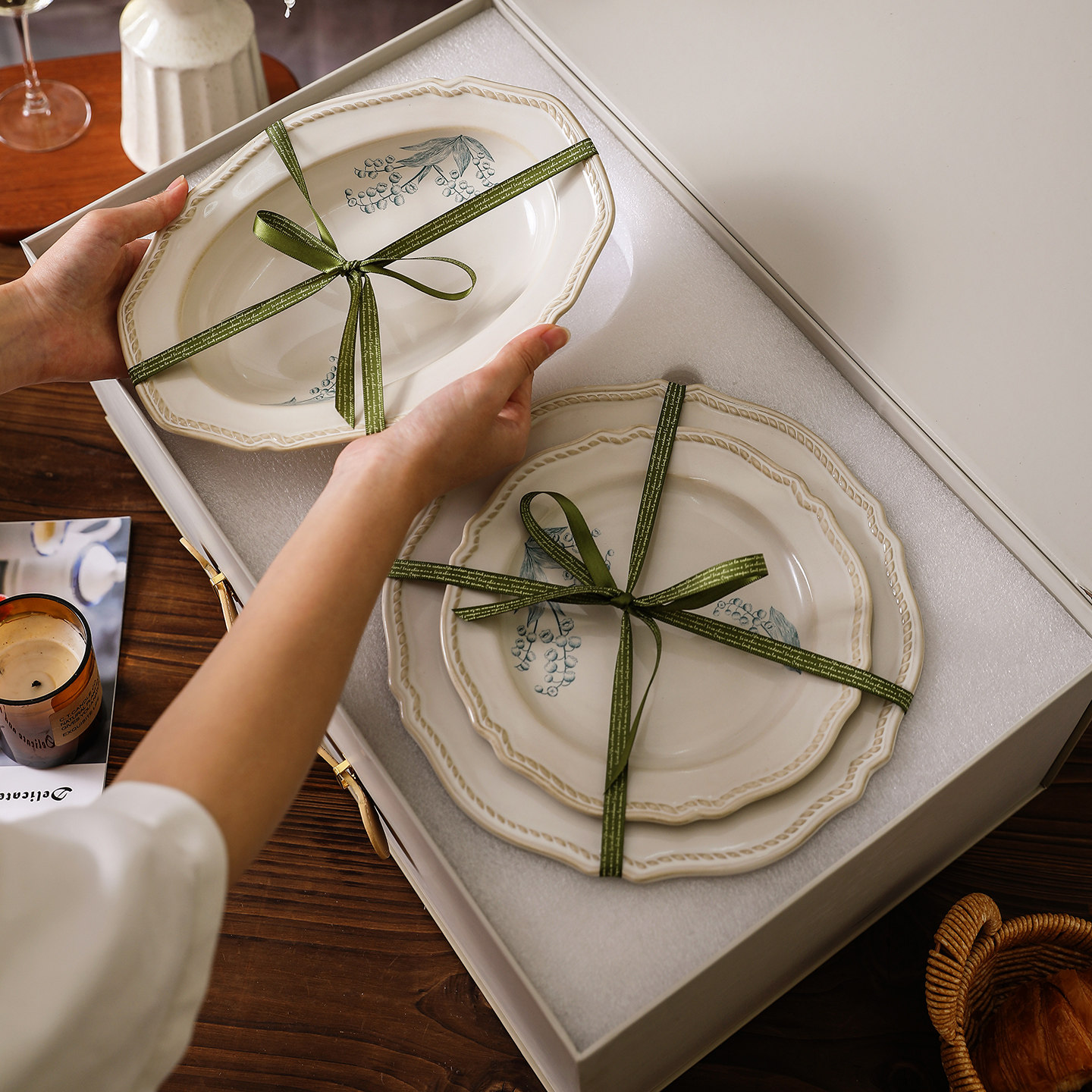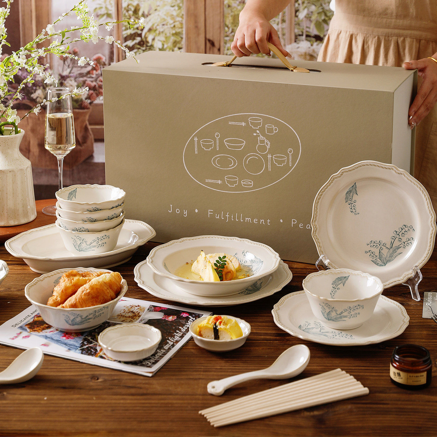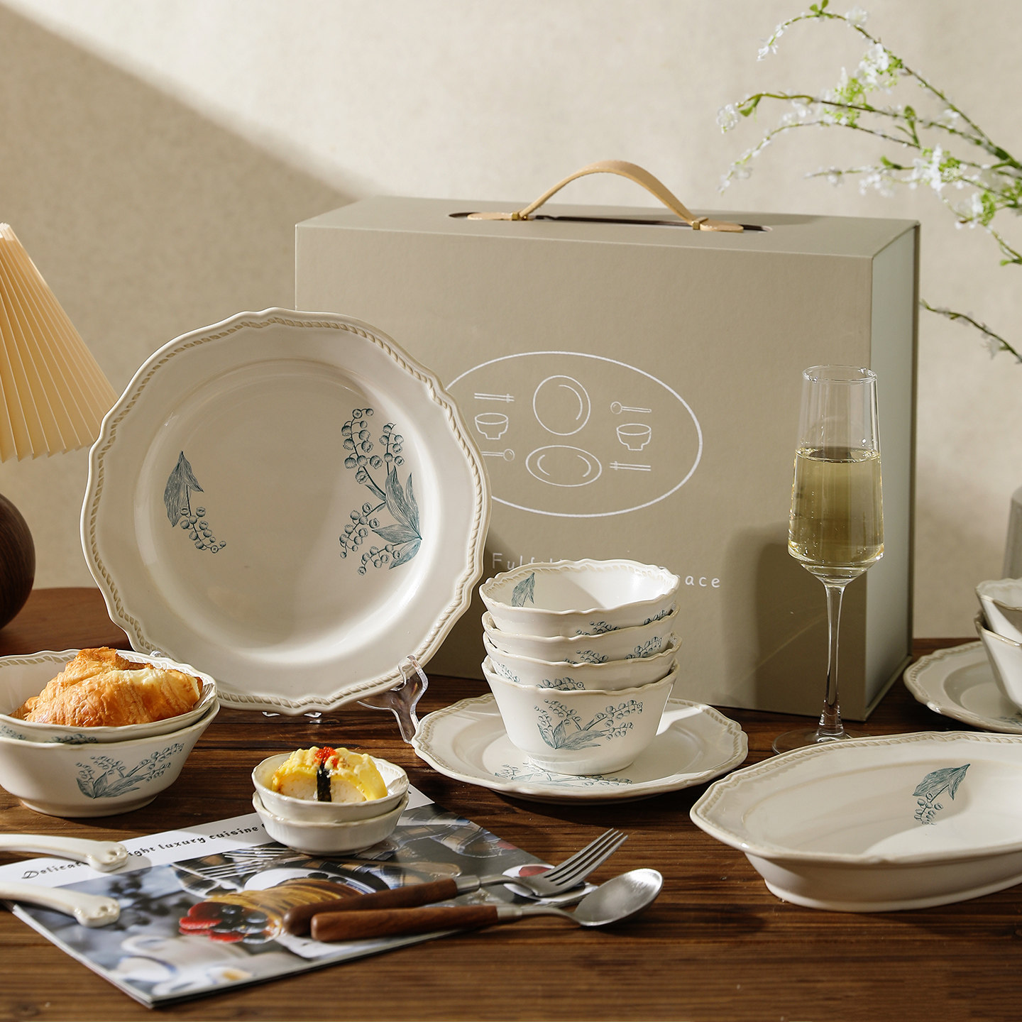 舍里法式铃兰碗碟套装家用陶瓷碗盘碗筷乔迁新居新婚礼物餐具礼盒