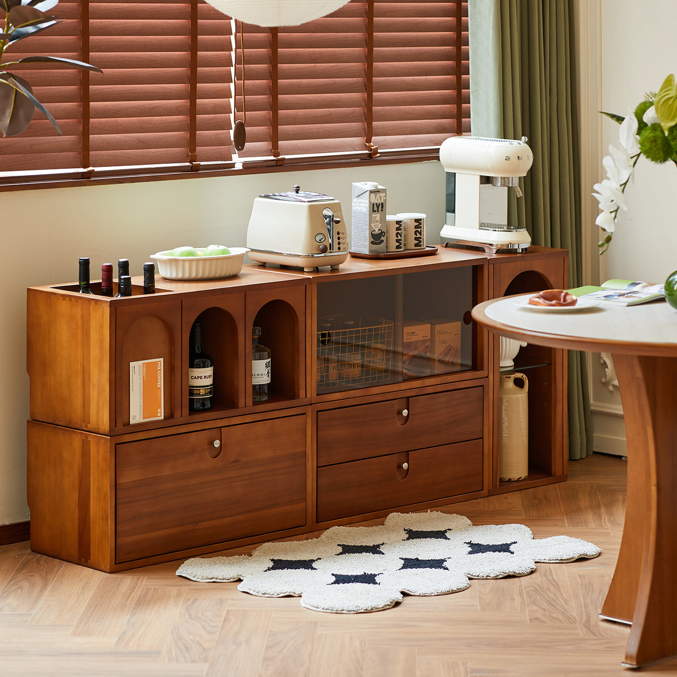 实木矮书柜书架斗柜矮柜地柜落地格子电视柜家用日式储物柜餐边柜