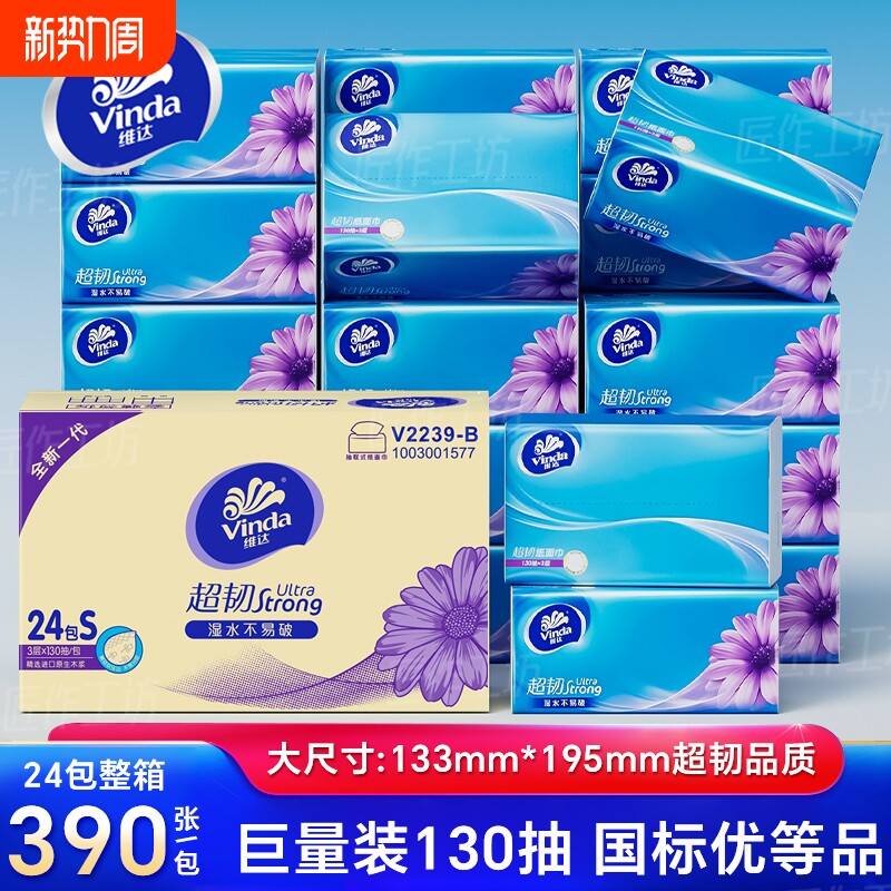 维达纸巾抽纸整箱130抽24包大包家用实惠装餐巾纸卫生纸面巾纸抽