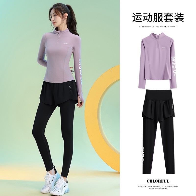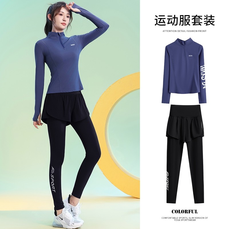 健身服女2024新款跑步训练套装秋冬瑜伽透气长袖运动上衣显瘦加绒