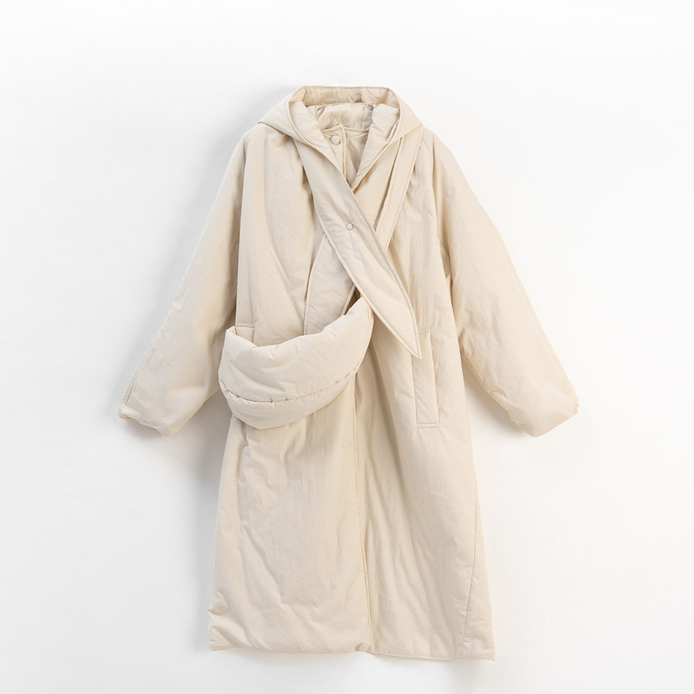 QUEENSHOP 2025秋冬新品女装铺棉外套附帽围半月包三件组02090087