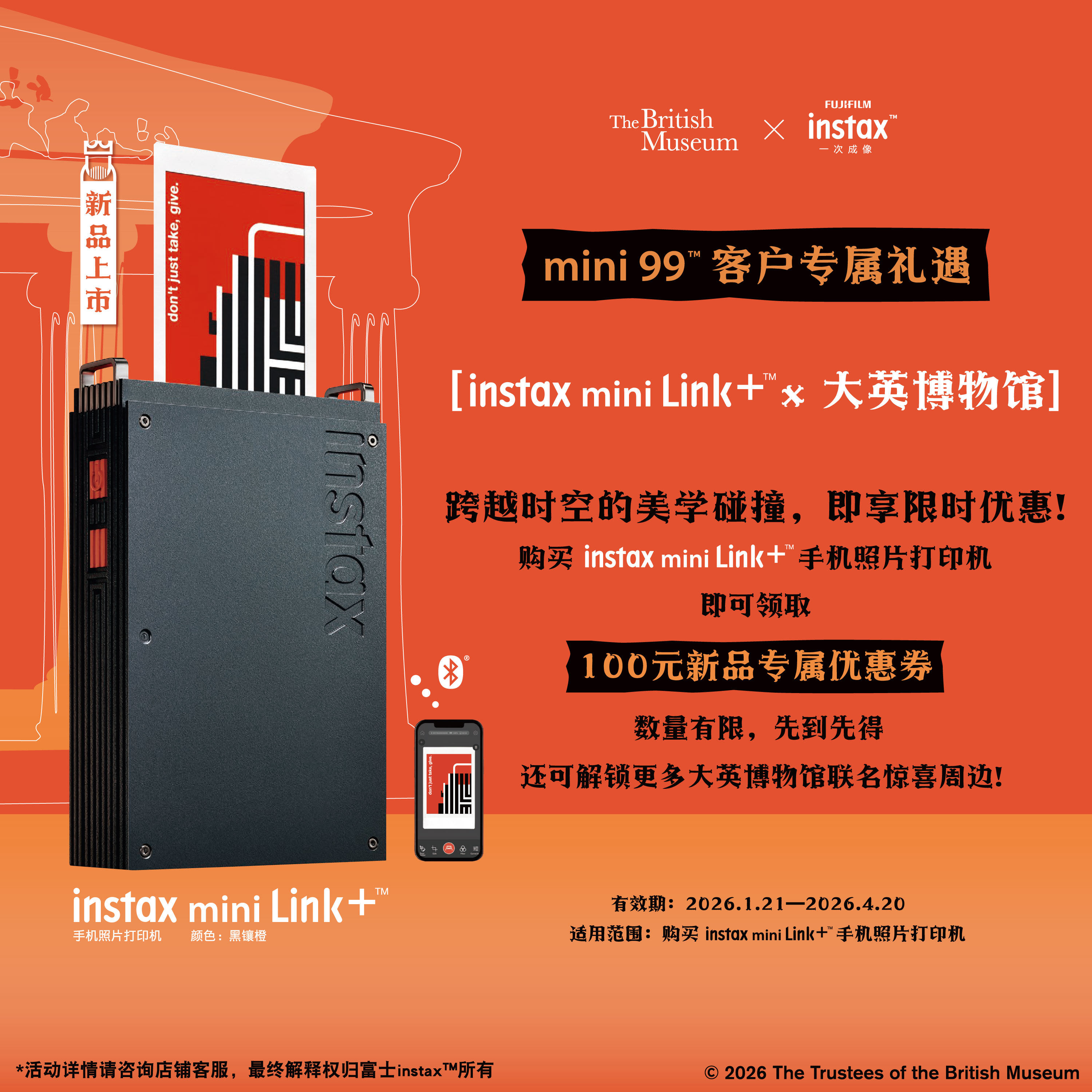 [12期分期]富士照片打印机mini Link+立拍立得instax手机照片迷你便携式口袋相片打印机link3升级款