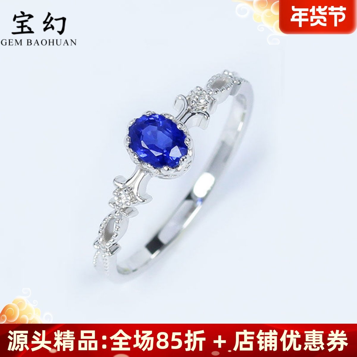18K白金斯里兰卡天然皇家蓝宝石椭圆皇冠戒指 镶钻石复古女款正品