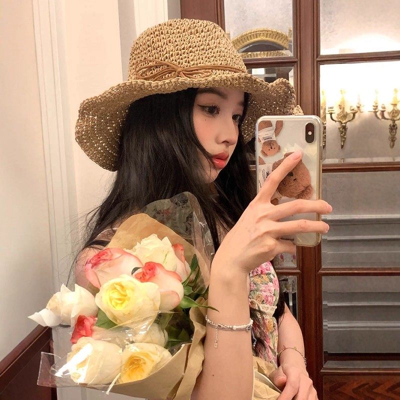 VVC小香风防晒帽女秋季新款防紫外线遮阳帽户外折叠背带太阳帽子