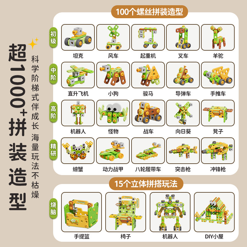 儿童大号拧螺丝玩具大颗粒积木宝宝婴儿1到3岁幼儿园益智开发动手