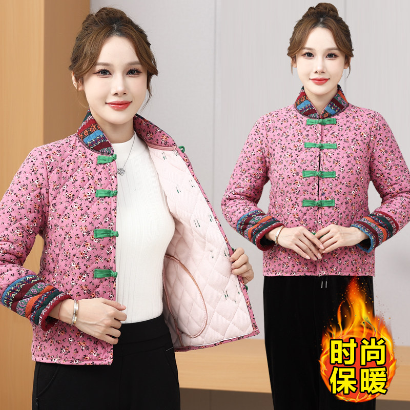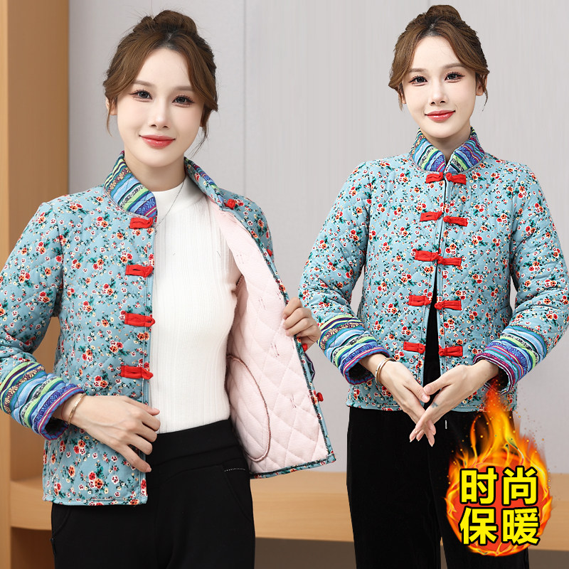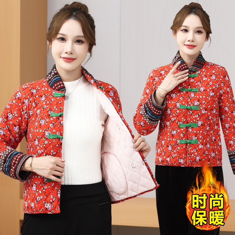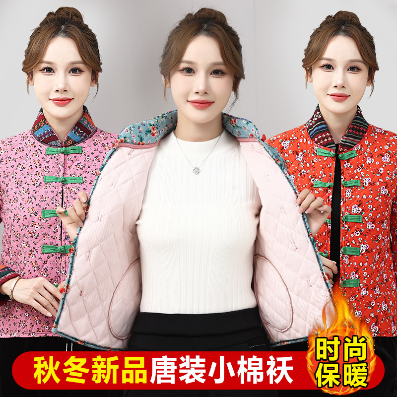 民族风秋冬新款小棉衣女士复古外套小棉服妈妈装女装棉袄唐装加棉