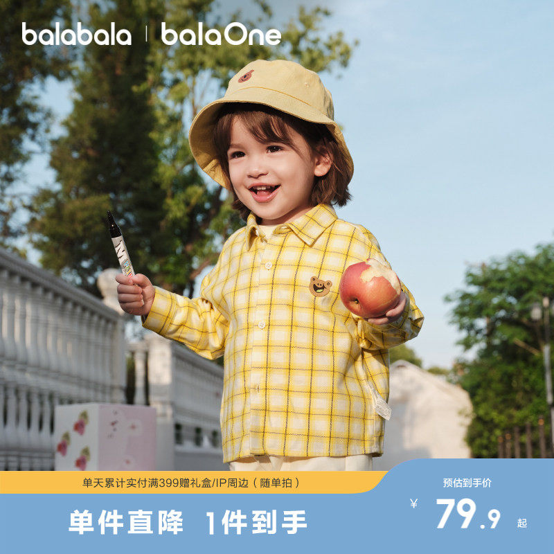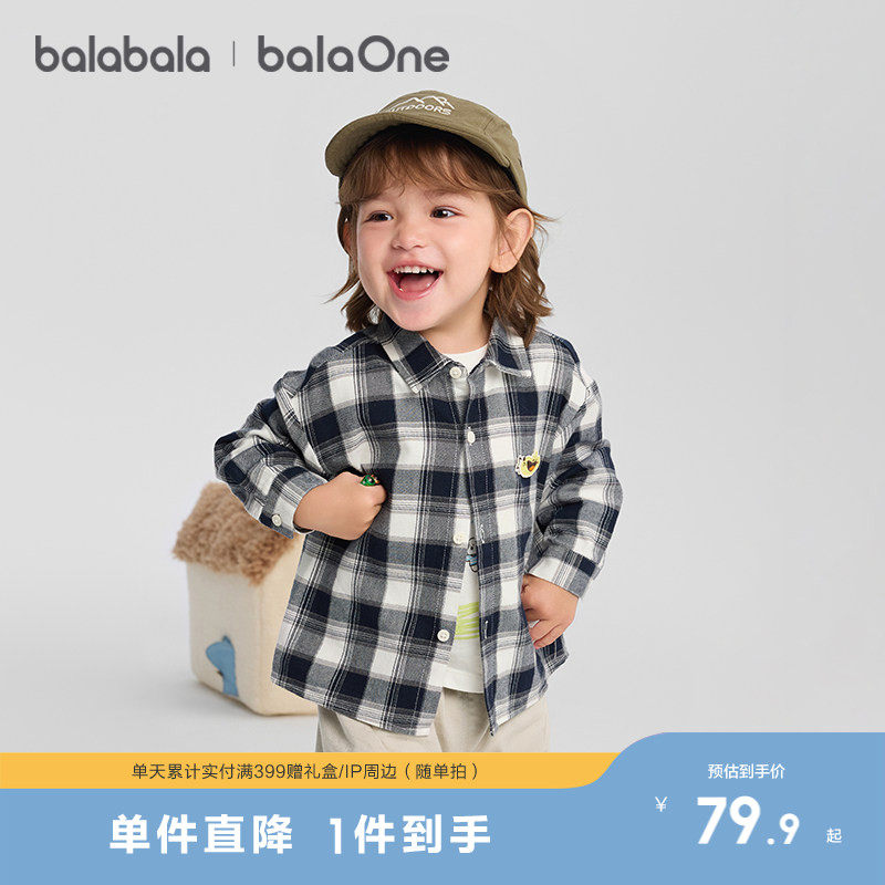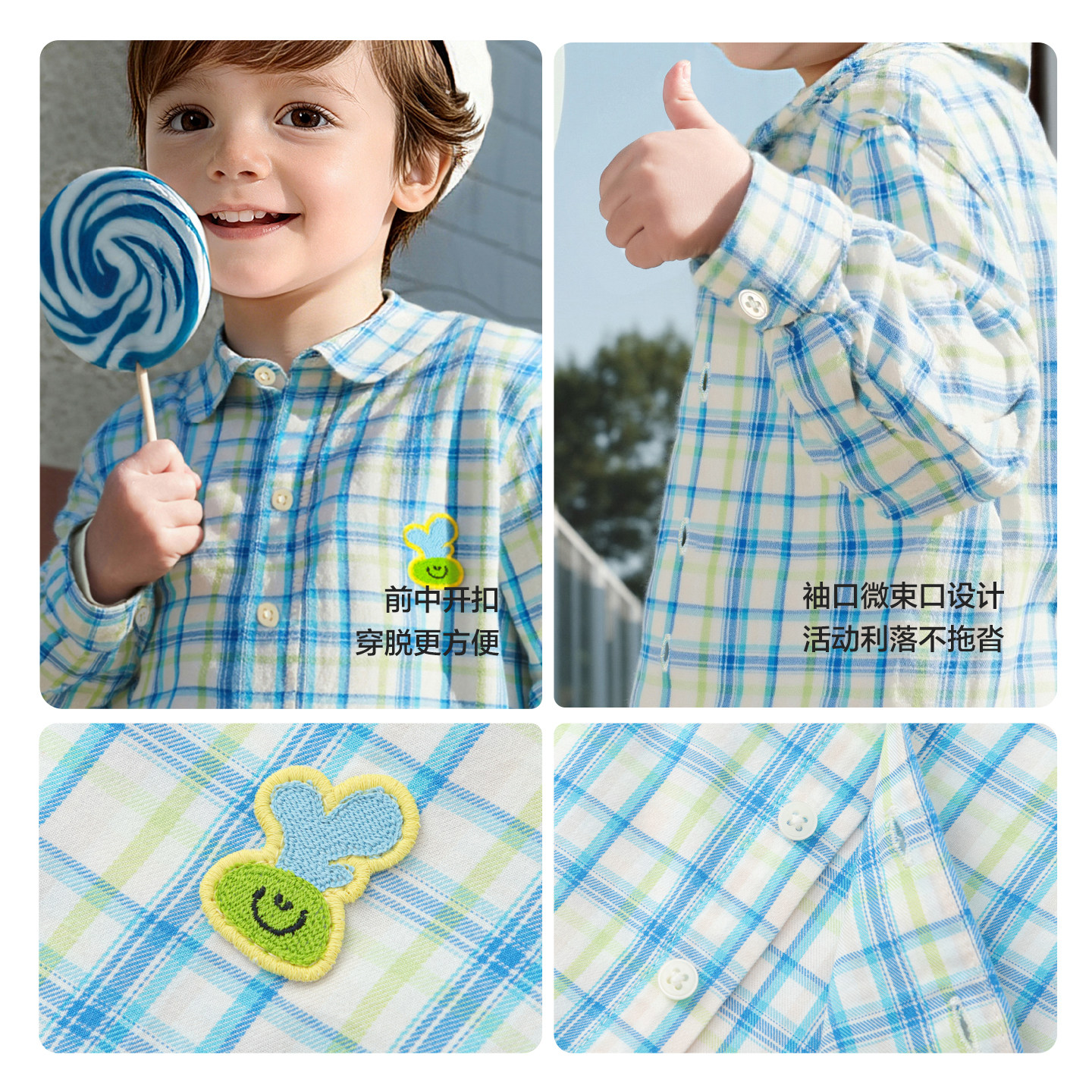 巴拉巴拉童装宝宝衬衫男童长袖2025新款秋装格子儿童外套学院风潮