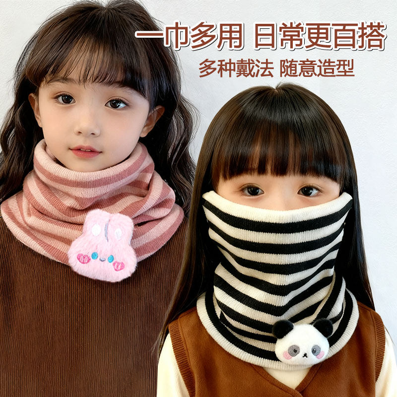 秋冬脖套儿童围脖卡通围巾护颈保暖针织防风保暖男女小孩挂耳围巾