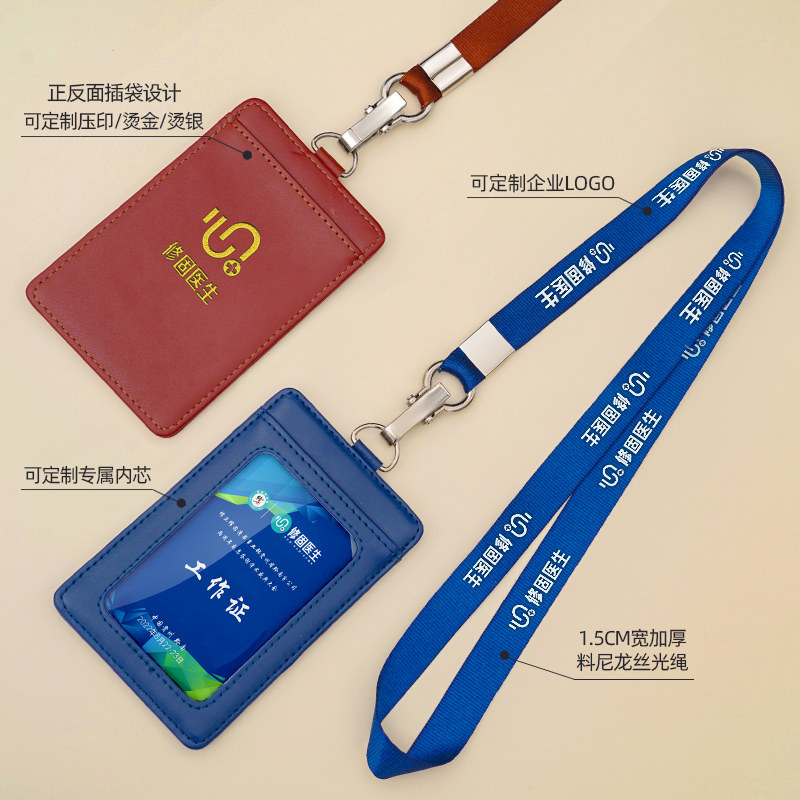 工作证卡套高档真皮挂绳胸卡横向竖版商务员工学生校牌工作牌定制企业公司logo厂牌公交门禁胸牌证件吊绳挂脖