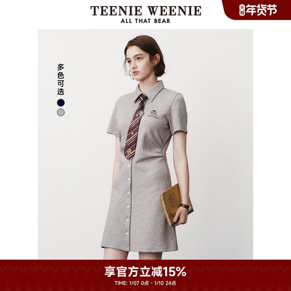 TeenieWeenie小熊奥莱连衣裙2025秋季新款简约休闲时尚刺绣女短裙