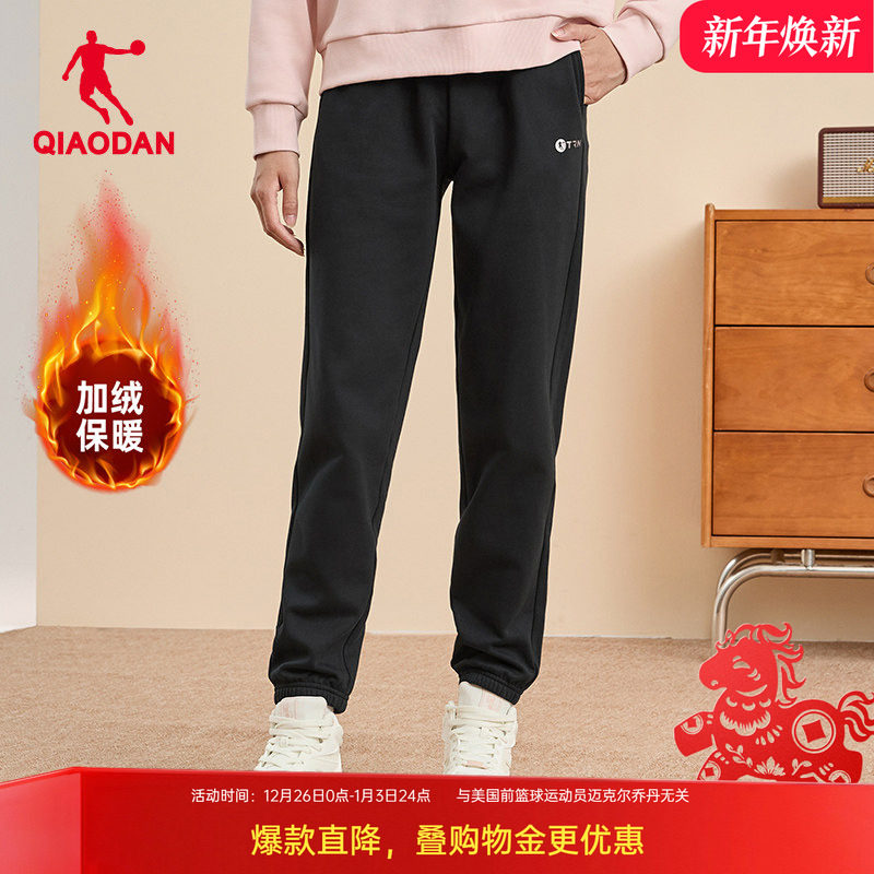 乔丹保暖直筒运动裤冬季新款加厚宽松休闲宽松男士卫裤长裤子官方