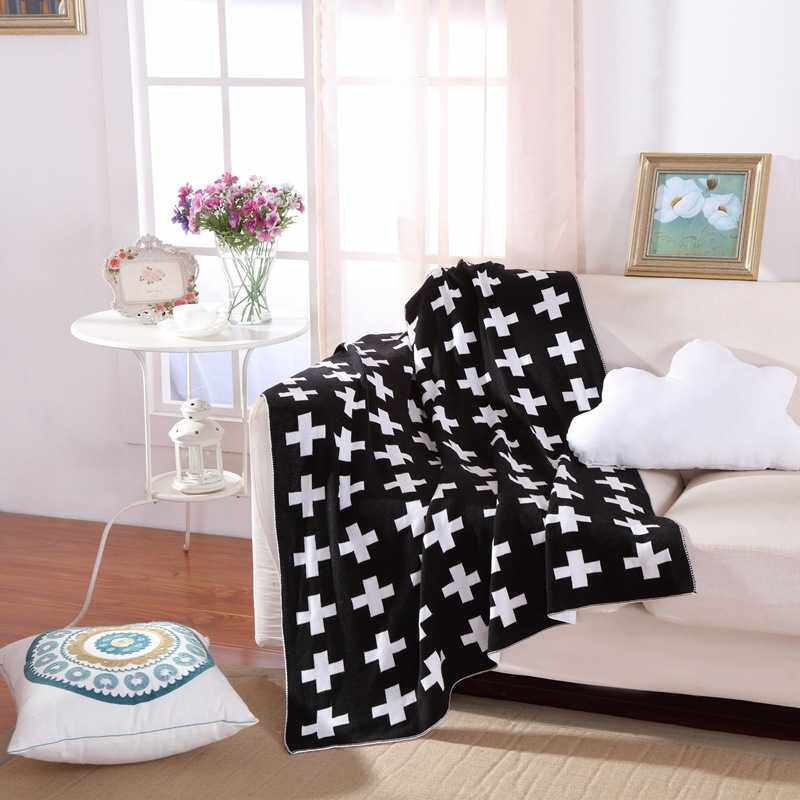 厂家 儿童十字纯棉针织线毯沙发盖毯INS爆款婴儿毯