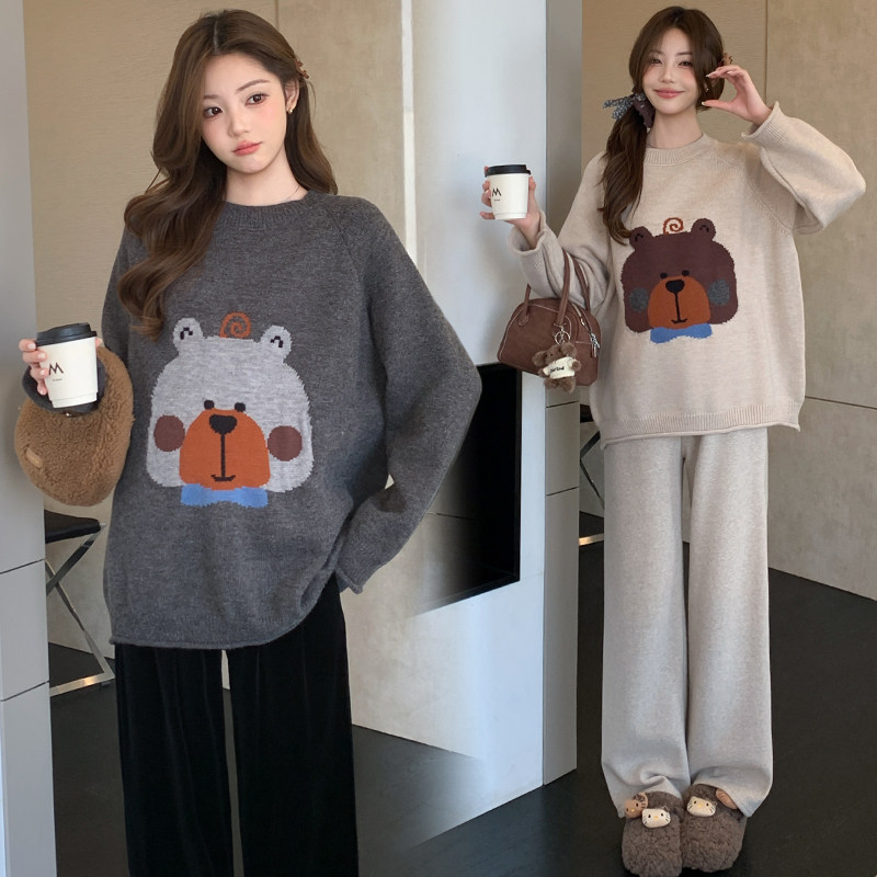 婧麒孕期考拉卡通上衣外穿秋冬孕妇装新款孕妇毛衣女时尚宽松冬装