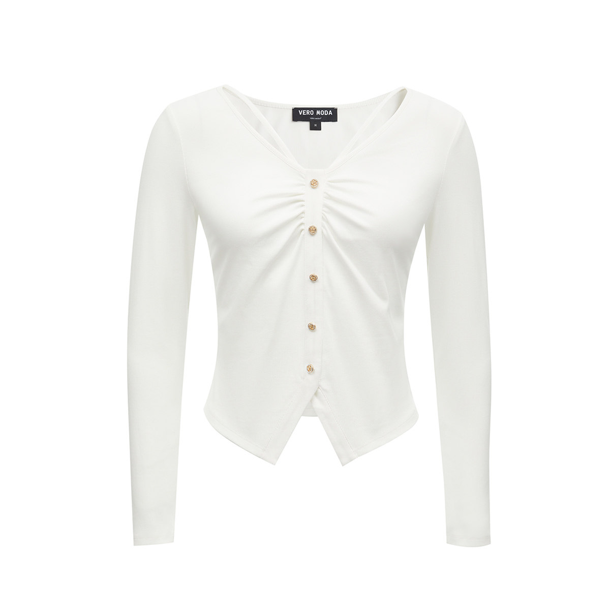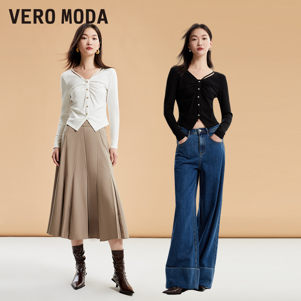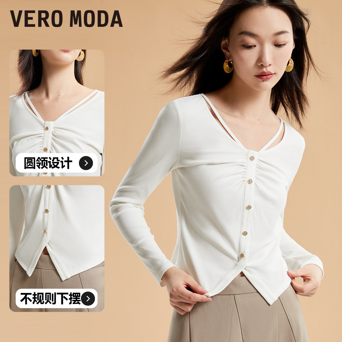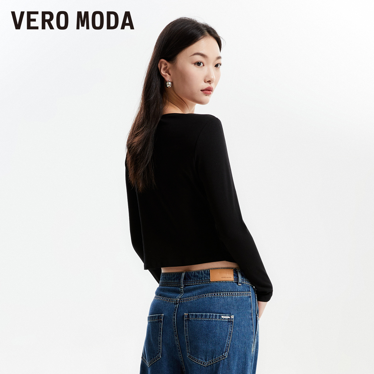 绫致Vero ModaT恤上衣女2025早冬新修身短款套头打底简约通勤黑白