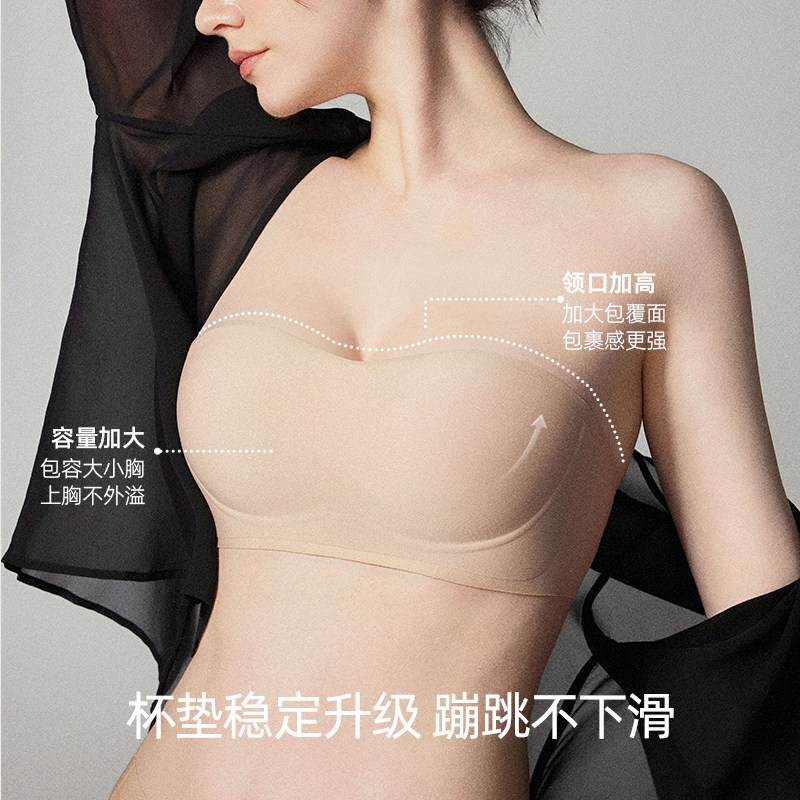 菇娘家稳稳杯无肩带内衣女大胸美背抹胸裹胸隐形无痕聚拢防滑文胸
