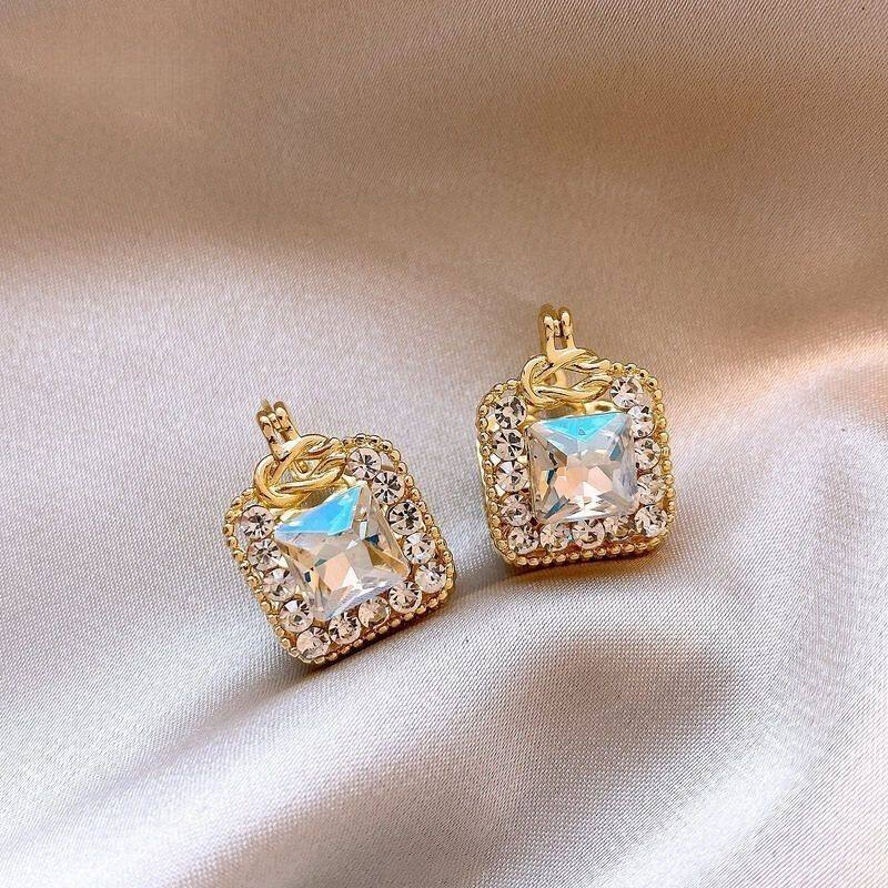 高级设计师款金色几何方形锆石耳扣耳环女轻奢适合冬天耳饰巨好看