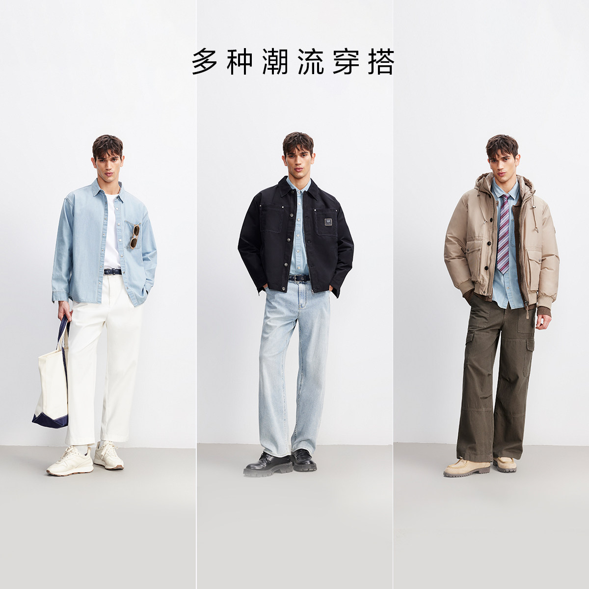 【牛仔衬衫男款】杰克琼斯蓝色长袖衬衣春季中性薄款纯棉上衣男装