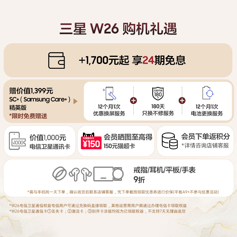 【24期免息】Samsung/三星 W26心系天下高端折叠屏4.2mm超轻超薄大屏商务AI智能手机三星官方旗舰店