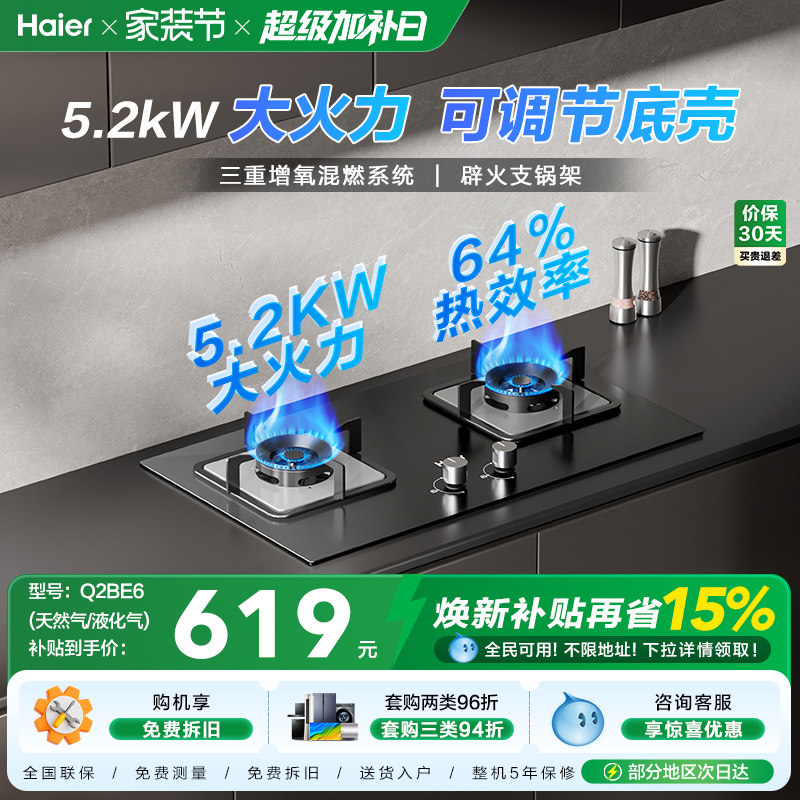 海尔燃气灶煤气灶双灶家用天然气猛火灶台嵌入式台式大火力Q2BE6