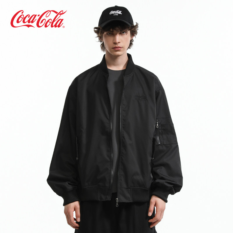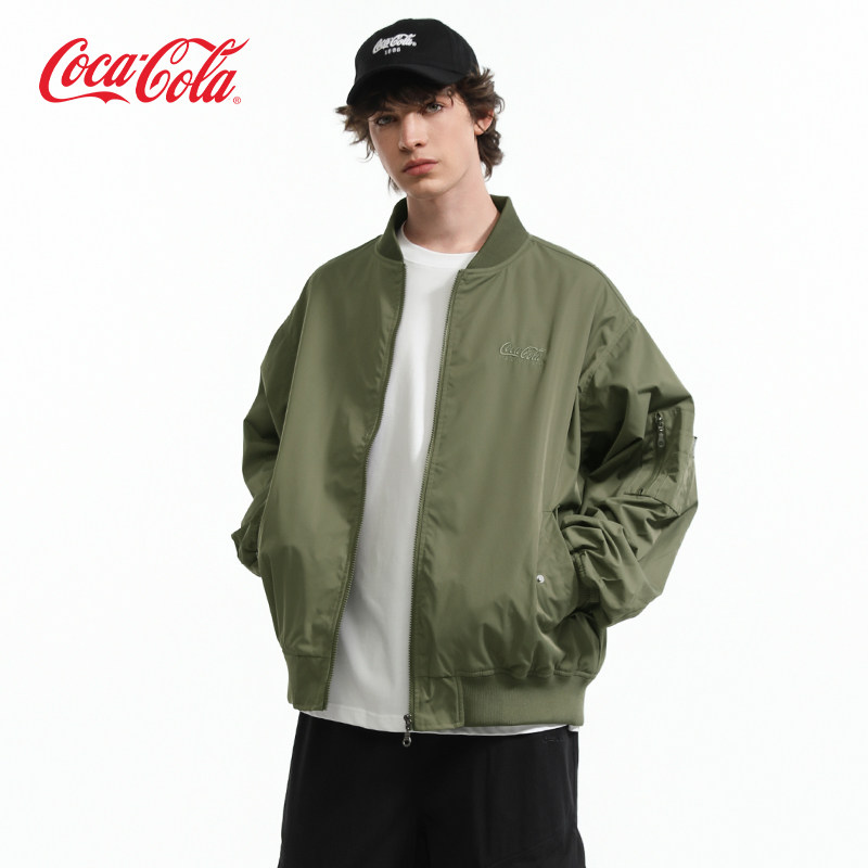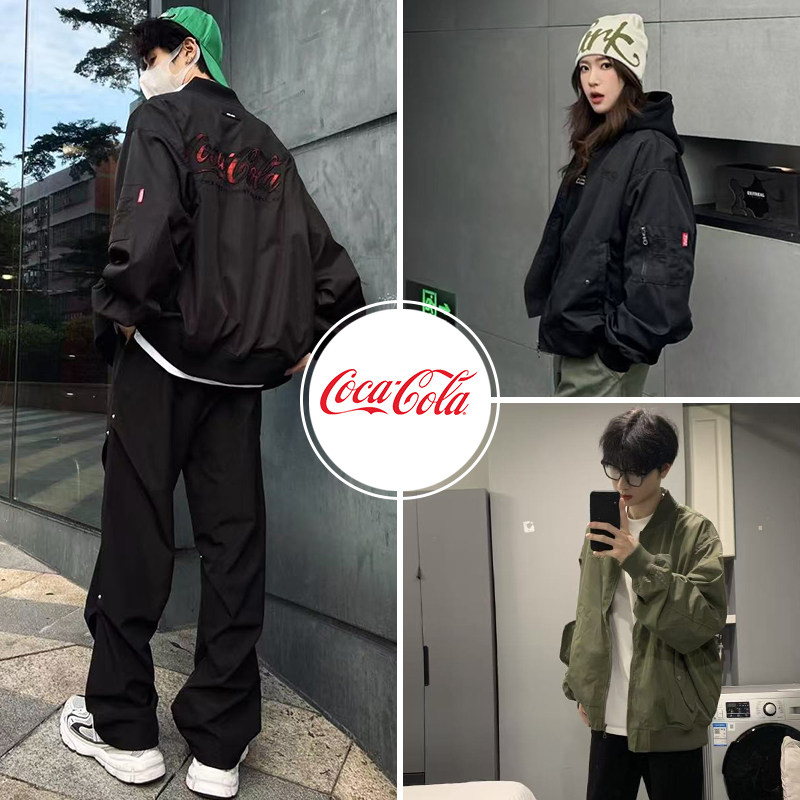 Coca-Cola/可口可乐男女同款渐变格纹贴布绣美式复古休闲外套夹克