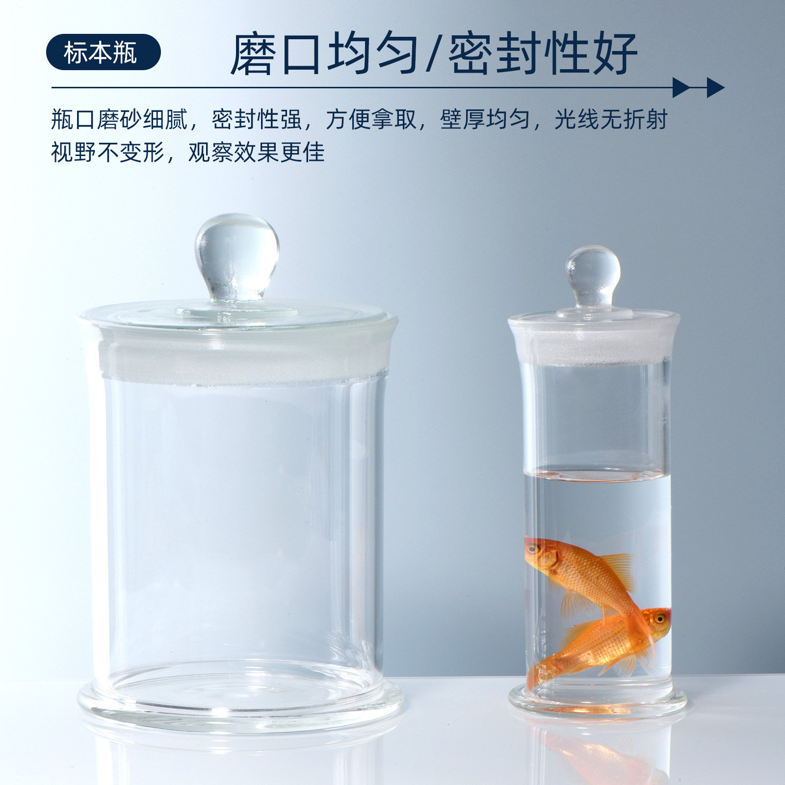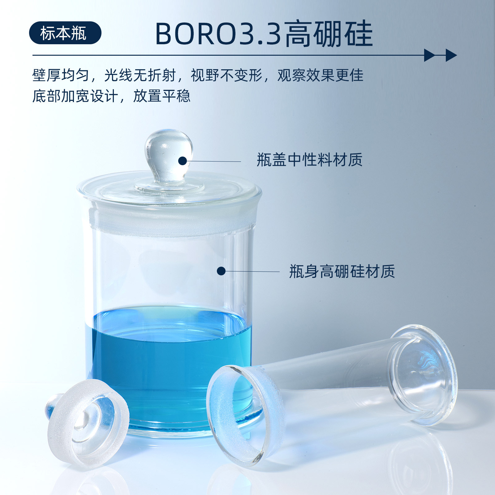 三爱思 标本瓶C82 磨砂口密封样品瓶广口瓶展示瓶 干货茶叶储物罐密封罐 高硼硅玻璃 物理化学生物实验室器材