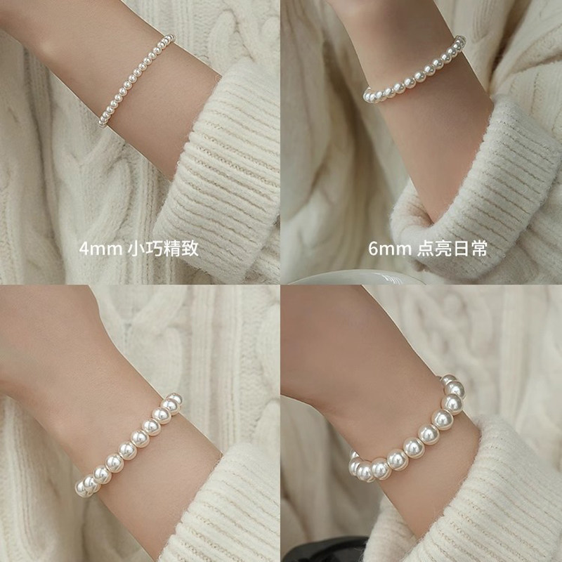 轻奢小众珍珠手串女显白精致小米粒贝珠叠戴仿珍珠正圆手链高级感