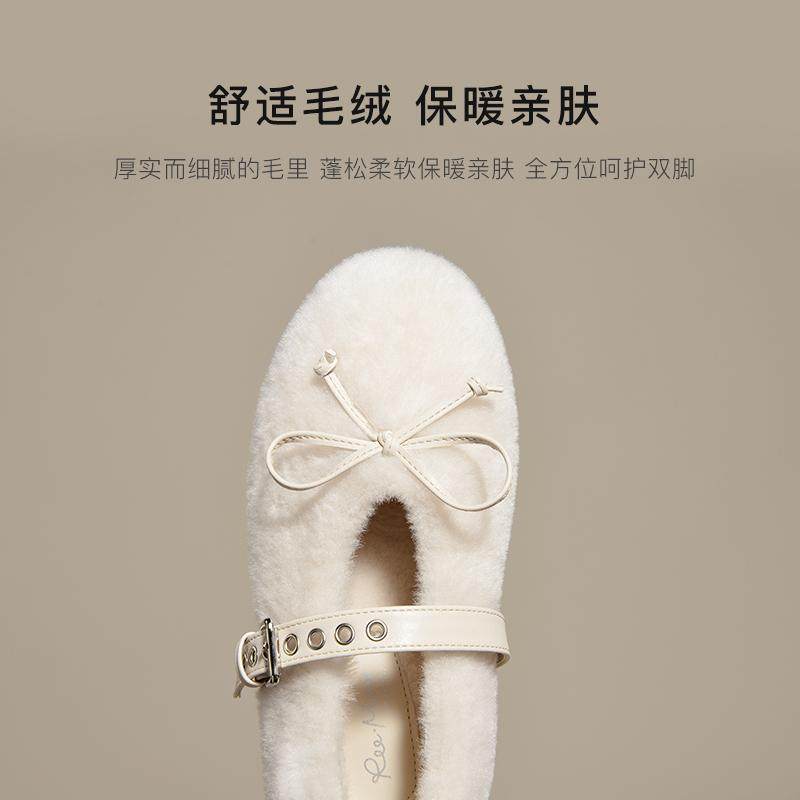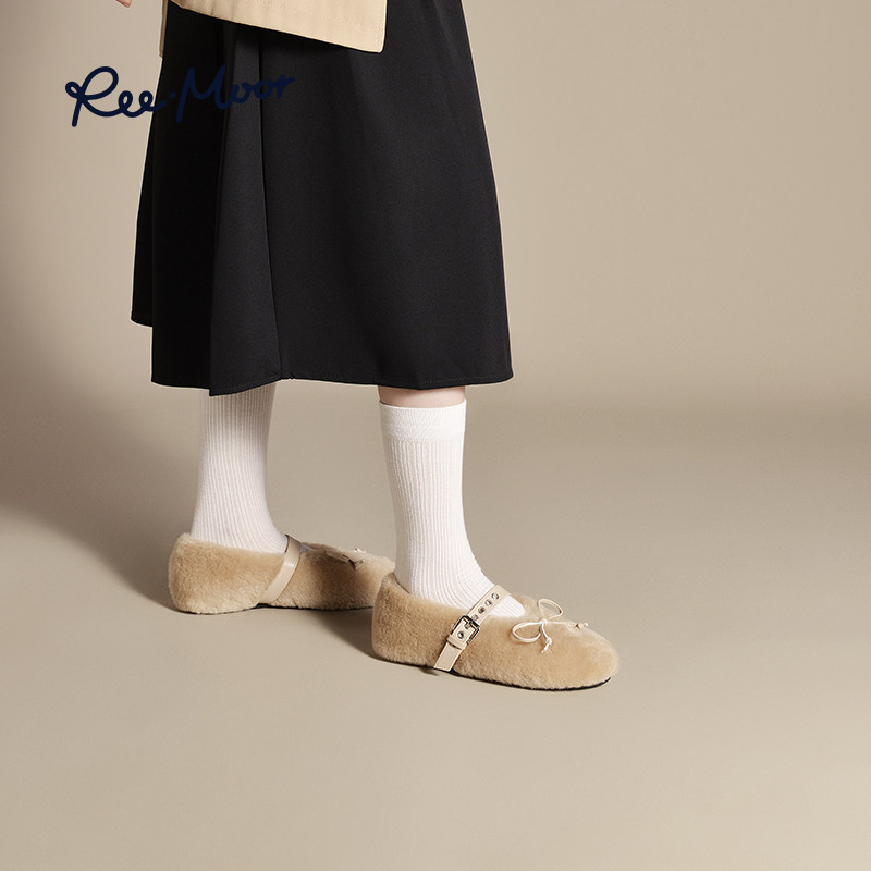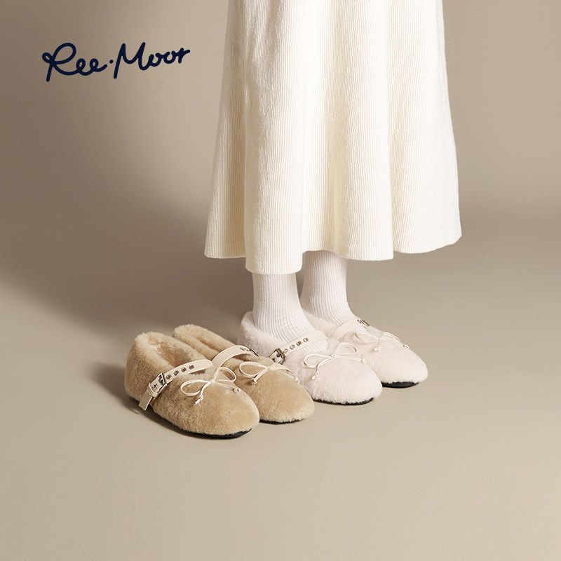REEMOOR睿慕2025年秋冬新款蝴蝶结毛毛鞋豆豆鞋保暖棉鞋外穿女鞋