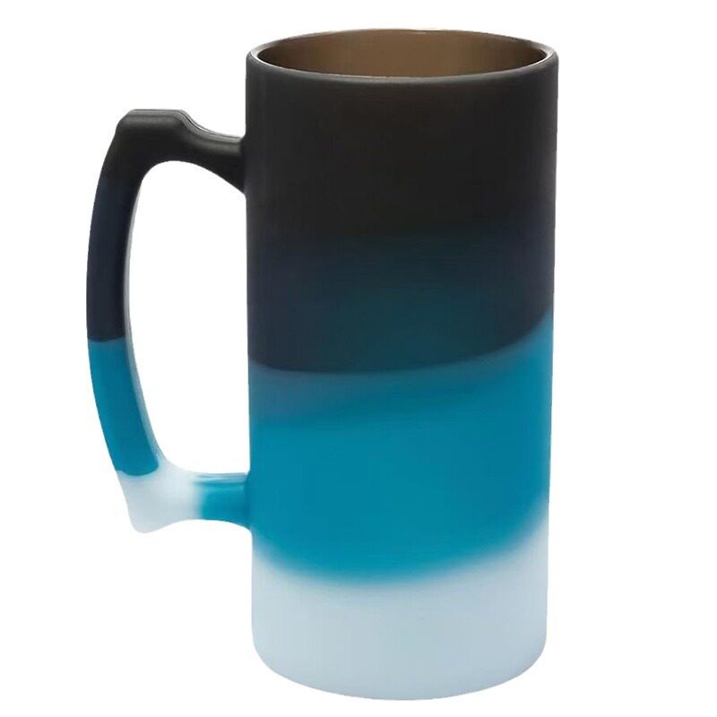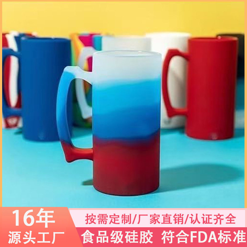 亚马逊热卖硅胶啤酒杯28oz大容量带手柄可印logo家用硅胶水杯批发