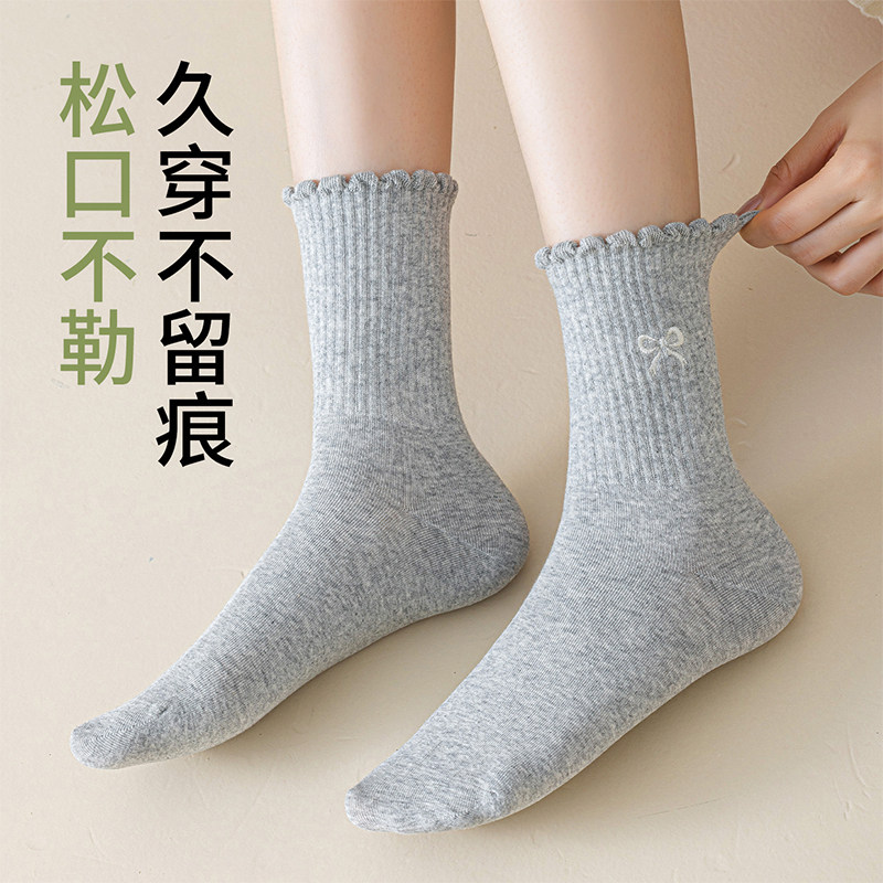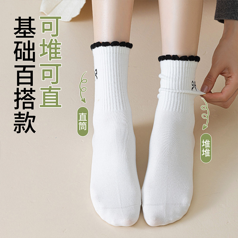 蝴蝶结袜子女款中筒袜春秋季纯棉芭蕾风长袜2025新款木耳边堆堆袜