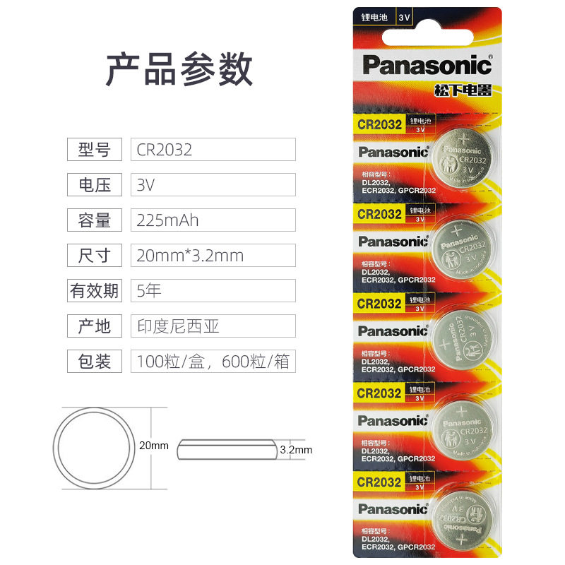 松下纽扣电池5粒CR2032/CR2025/CR2016电子3V适用摩托汽车钥匙遥控器CR1620/CR1220/CR1616/CR1632/CR2450