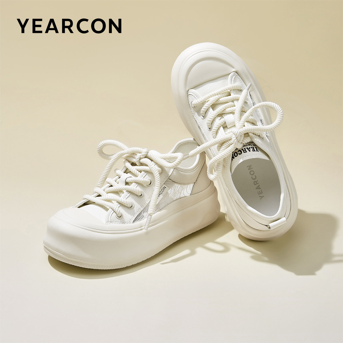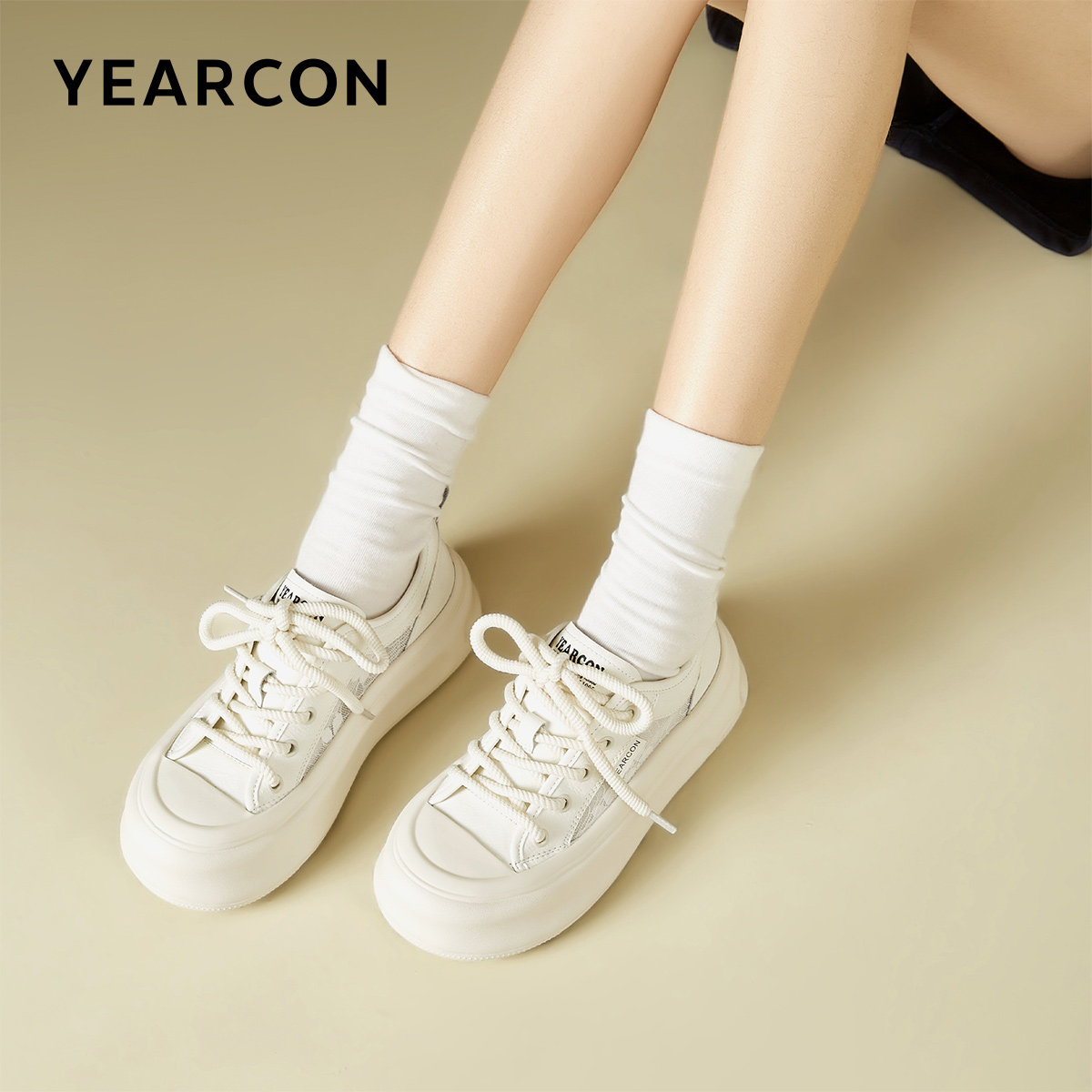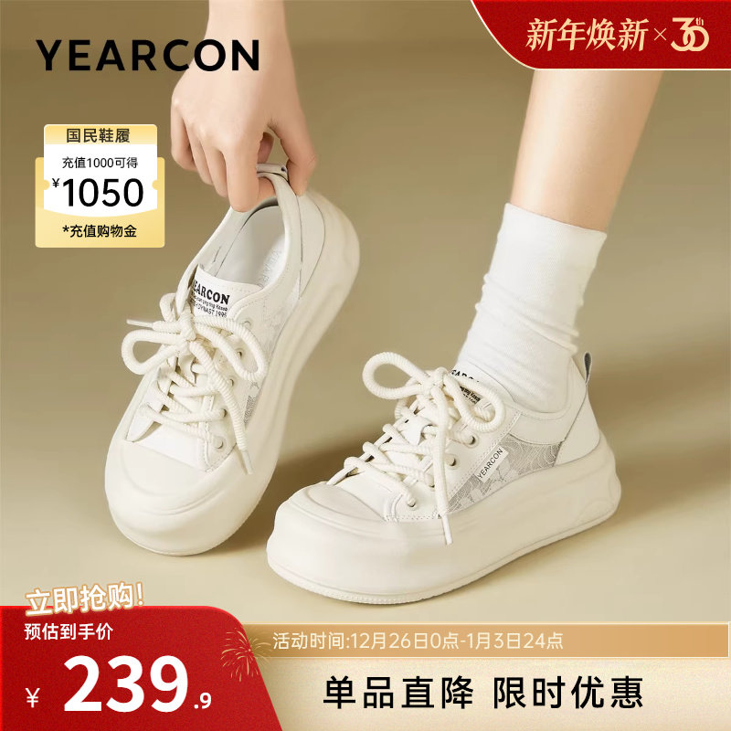 意尔康女鞋春秋季板鞋小白鞋女士厚底运动休闲面包单鞋云朵大头鞋