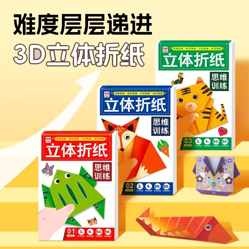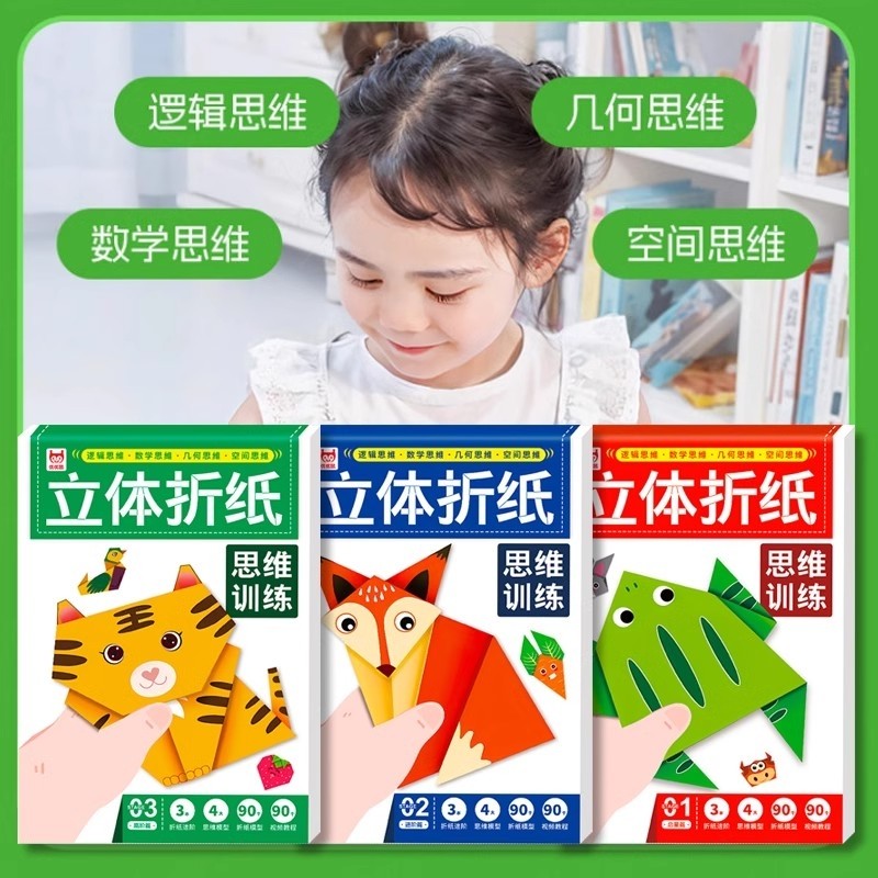 折纸手工儿童彩纸diy制作3d立体幼儿园3-6宝宝折纸书开发益智玩具diy3456岁玩具书动物几何高级模型专注力小朋友