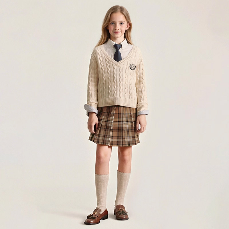 eland kids衣恋童装女童针织衫秋冬季绵羊毛混纺V领logo刺绣毛衣