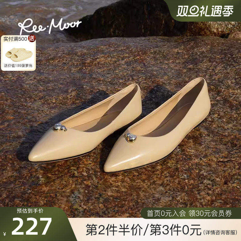 REEMOOR2025年新款韩版平底尖头浅口单鞋女软皮软底舒适女鞋