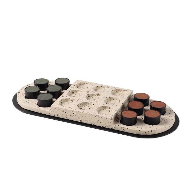现代简约轻奢棕红胭脂摆件皮革棋子棋盘茶室书房桌面家居装饰品摆